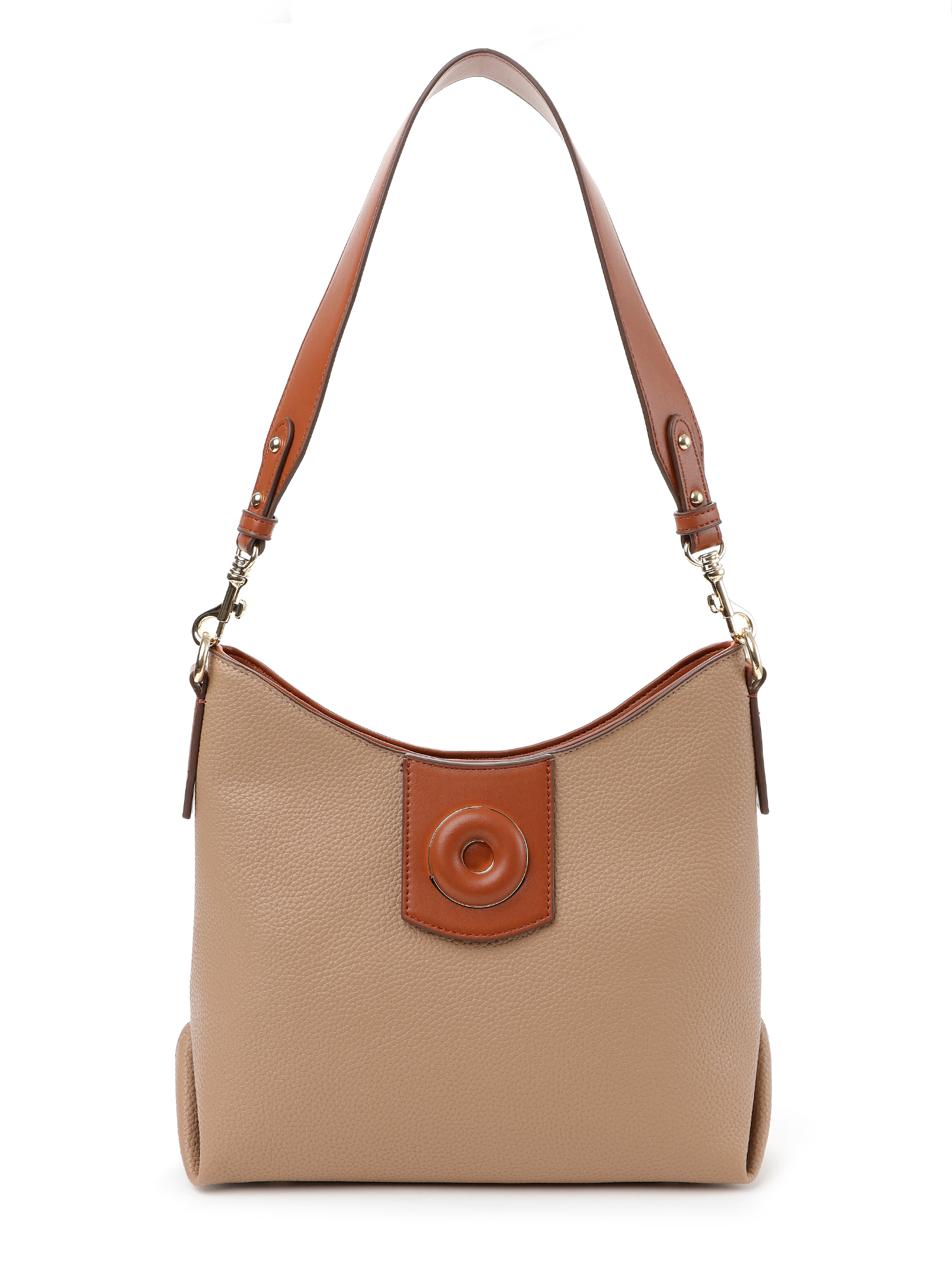 Удобная городская женская сумка хобо итальянского бренда FABRETTI выполнена из высококачественной экокожи с зернистой фактурой. Кофейно-бежевая рельефная кожа дополнена отделкой из гладкой экокожи коричневого цвета. Это классическое сочетание отлично гармонирует с повседневной одеждой на теплый сезон. Сумка вмещает все необходимое, но не выглядит объемной, плотная экокожа хорошо держит форму. Широкий плечевой ремень крепится на карабины.