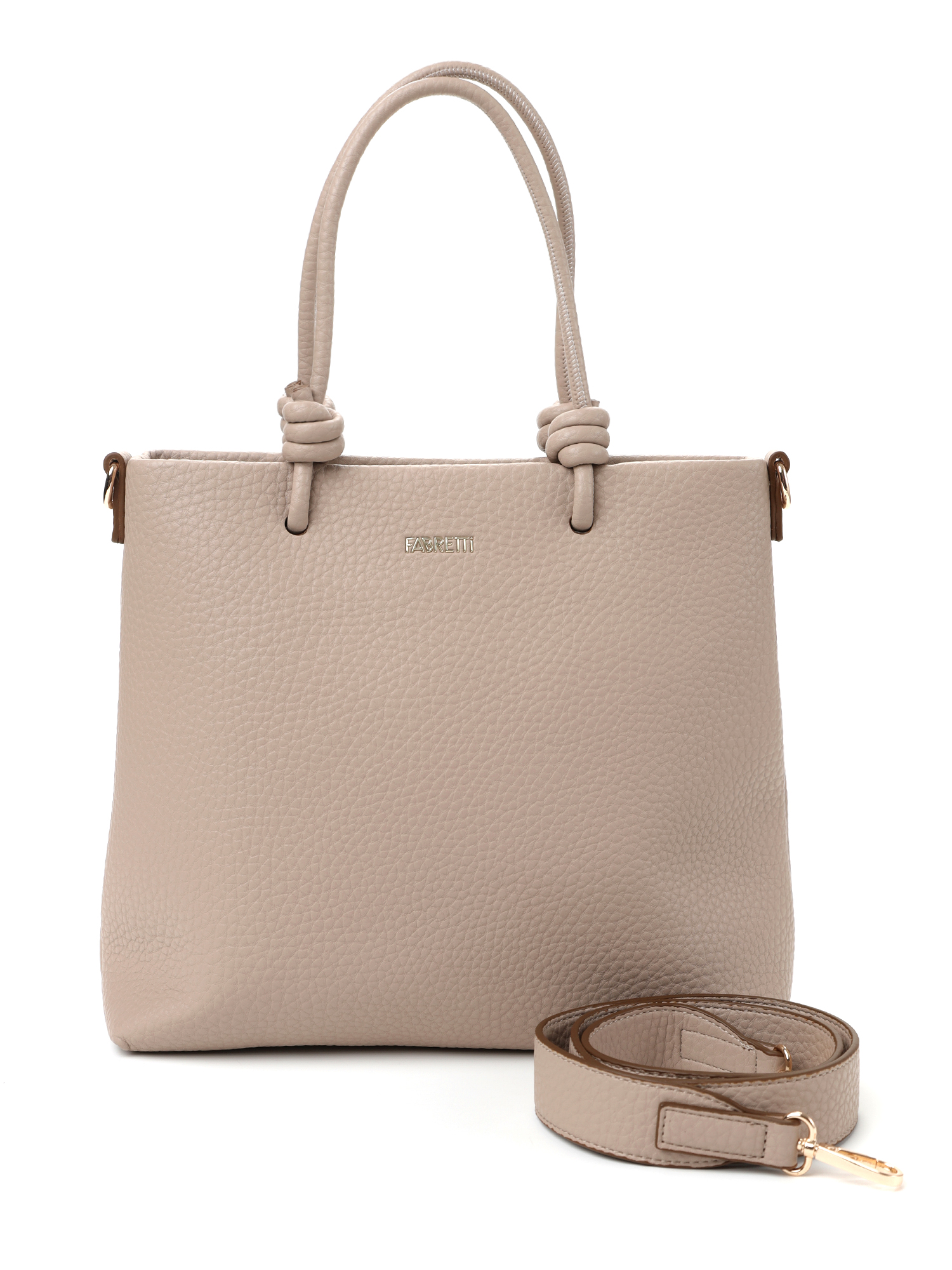 Стильная женская сумка тоут итальянского бренда FABRETTI из нежной экокожи с зернистой фактурой нежного «нюдового» бежевого оттенка.