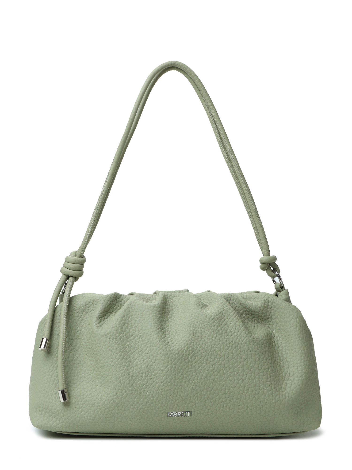Необычная мягкая женская сумка итальянского бренда FABRETTI из нежной экокожи с зернистой фактурой. Она выполнена в интересном светлом, серо-оливковом цвете, который хорошо сочетается с повседневным гардеробом, особенно в природных тонах.