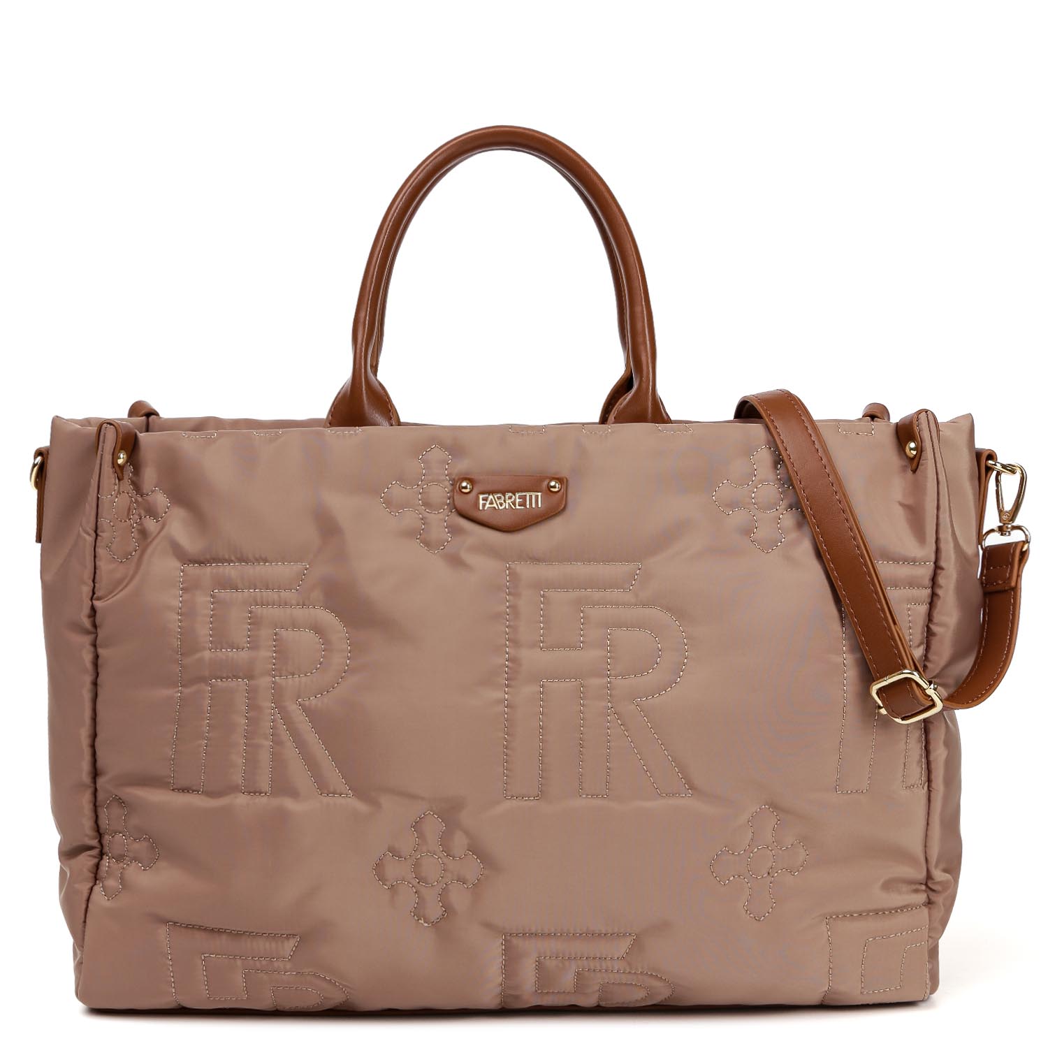 Стёганая сумка-тоут итальянского бренда FABRETTI в бежевом оттенке выполнена из высококачественного полиэстера, устойчивого к влаге и перепадам температур. Средний размер модели делает её удобной для повседневного использования. Ручки, плечевой ремень и детали отделки выполнены из экокожи коричневого оттенка. Основное отделение закрывается на молнию. Внутри два небольших кармана: один открытый и один на молнии. На тыльной стороне — карман быстрого доступа на молнии. В комплекте съёмный регулируемый ремешок длиной от 73 до 134 см, ширина — 1,8 см.