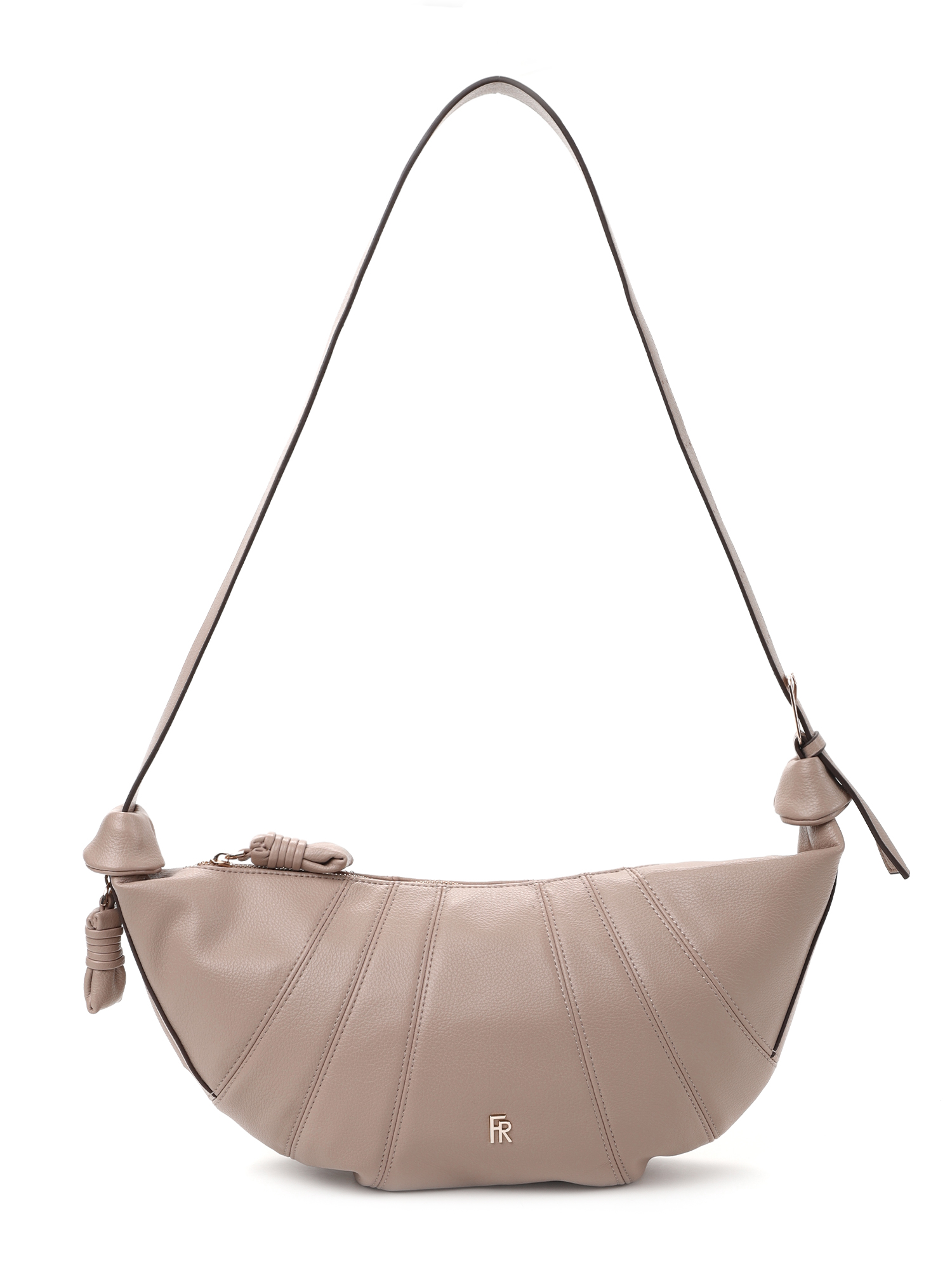 Сумка в форме полумесяца или круассана с характерными вертикальными швами – популярная городская модель со сложным дизайном. Это акцентный аксессуар, притягивающий внимание.