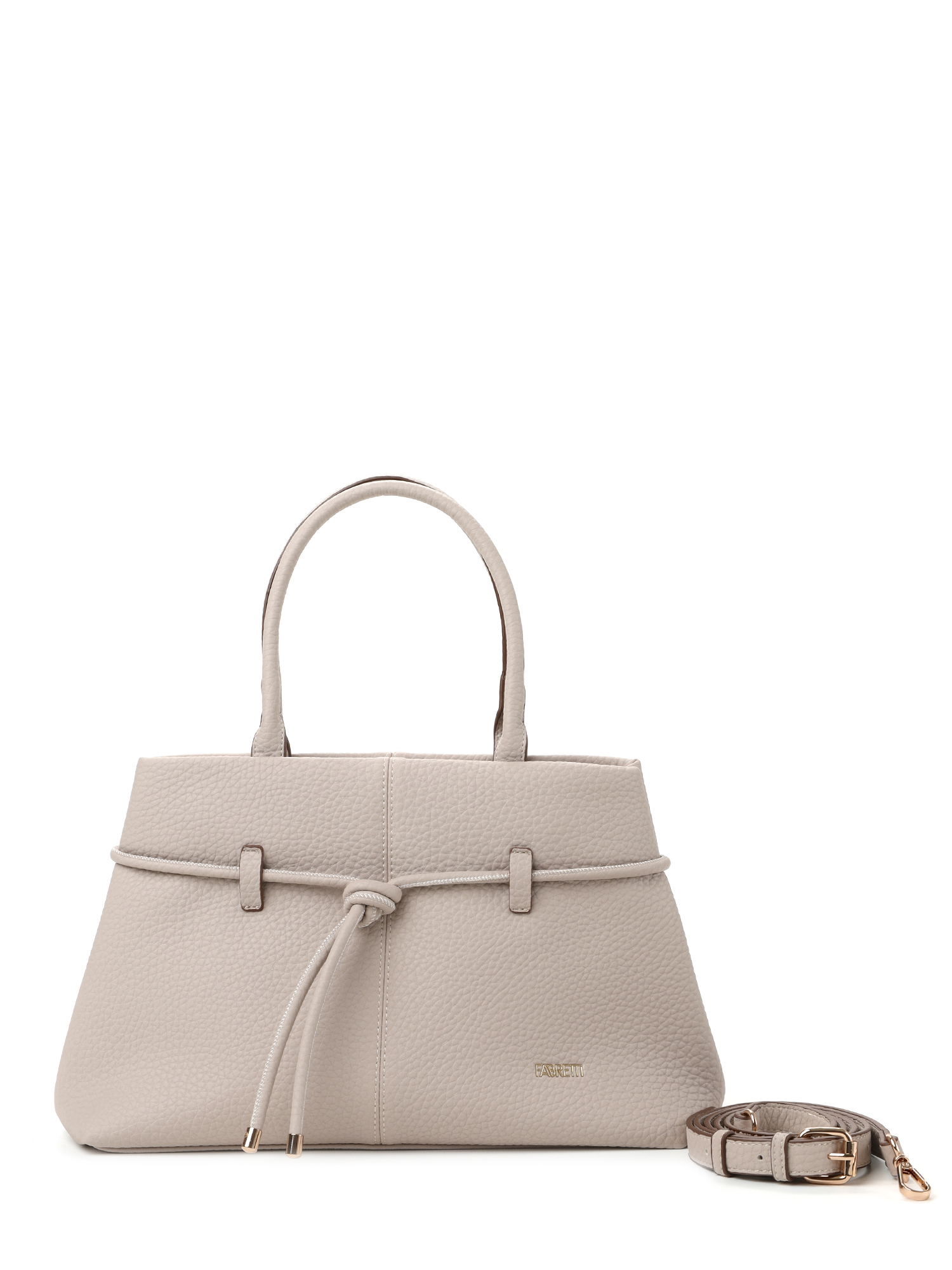 Эффектная женская сумка тоут итальянского бренда FABRETTI из нежной экокожи с зернистой фактурой светлого серо-бежевого оттенка.