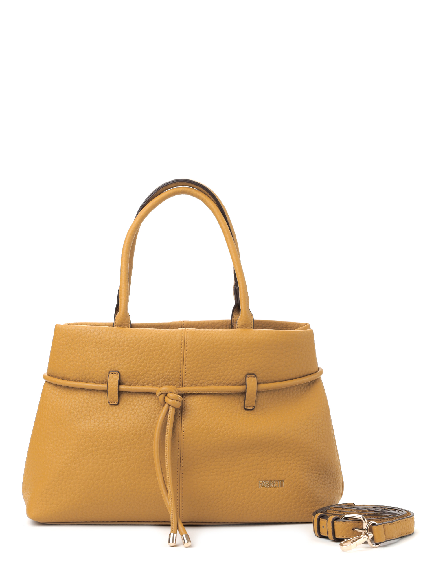 Эффектная женская сумка тоут итальянского бренда FABRETTI из нежной экокожи с зернистой фактурой теплого горчичного оттенка.