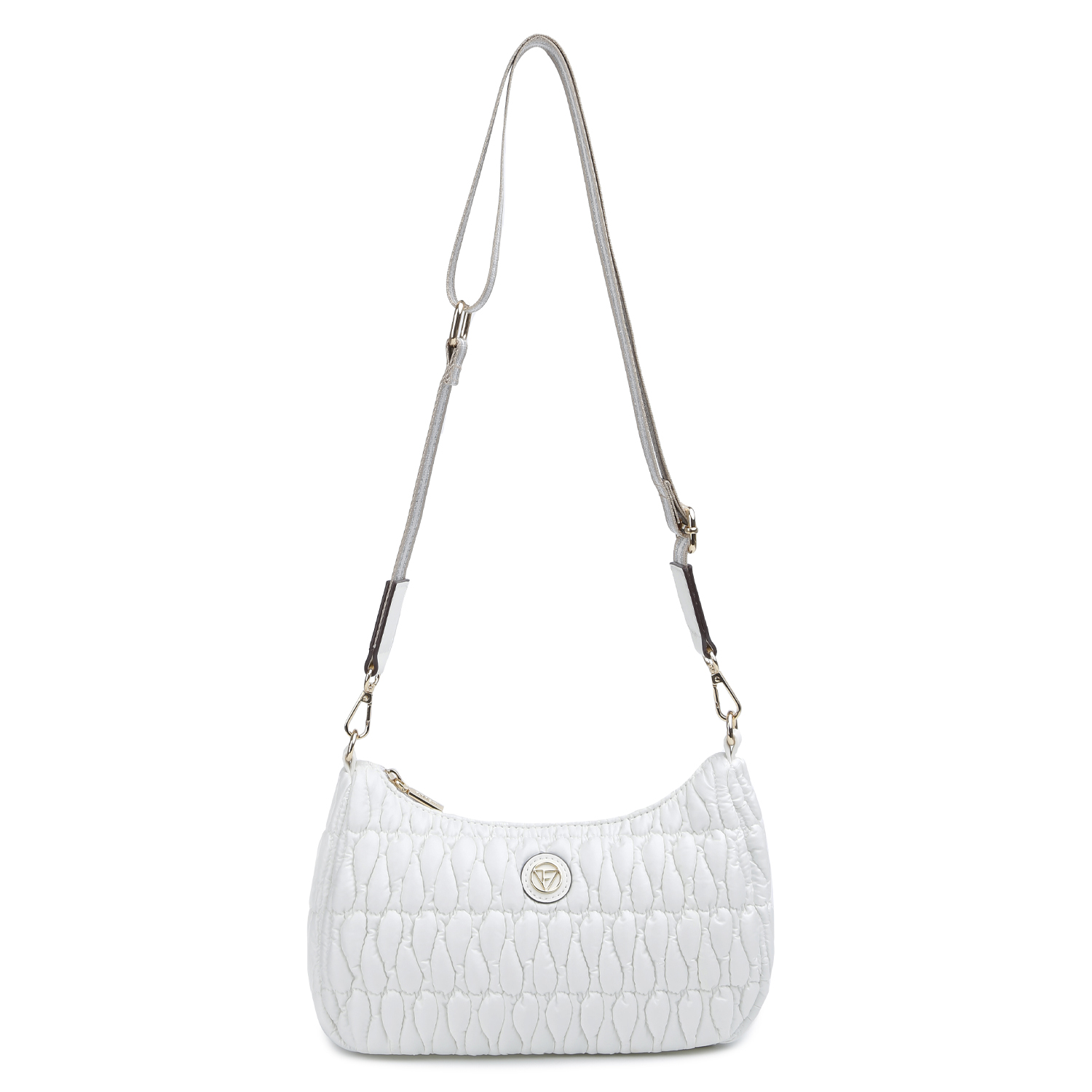 Компактная кросс-боди FABRETTI в белом оттенке выполнена из высокотехнологичной ткани, которая устойчива к воздействию влаги и перепаду температур. Основное отделение закрывается на молнию. Внутри 2 боковых кармана для мелочей: открытый и на молнии. Съемный плечевой ремень, регулируемый по длине, ширина - 4 см. Цвет фурнитуры - золото.