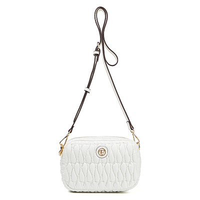 Компактная кросс-боди FABRETTI в белом оттенке выполнена из высокотехнологичной ткани, которая устойчива к воздействию влаги и перепаду температур. Основное отделение закрывается на молнию. Внутри 2 боковых кармана для мелочей: открытый и на молнии. Съемный плечевой ремень, регулируемый по длине, ширина - 1,5 см. Цвет фурнитуры - золото.