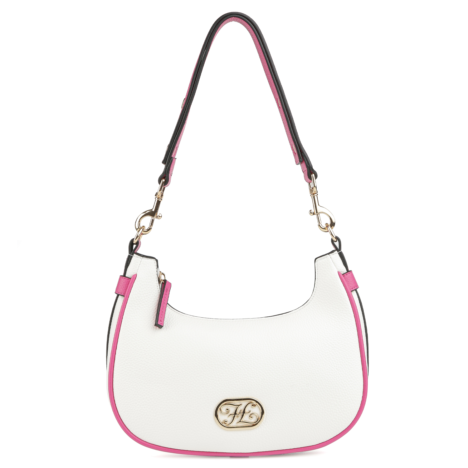 Актуальная сумка-багет FABRETTI в белом оттенке выполнена из высококлассной экокожи, идеально повторяющей зернистую фактуру натуральной кожи. Материал изделия приятен на ощупь, прекрасно выдерживает перепады температур и износоустойчив в процессе эксплуатации. Основное отделение закрывается на молнию. Внутри 2 кармана для мелочей: открытый и на молнии. Лицевая сторона декорирована аппликацией с логотипом бренда. Цвет фурнитуры - золото.