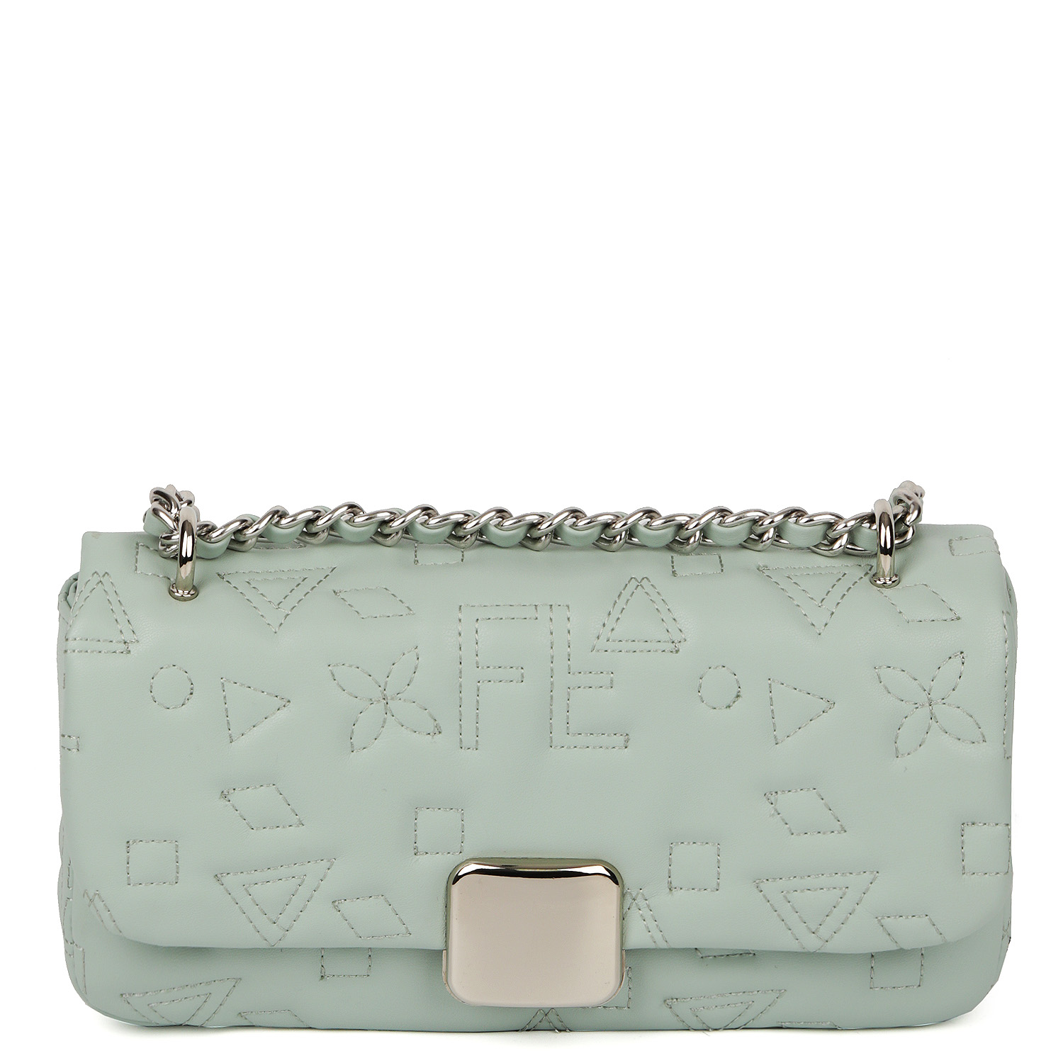 Эффектная кросс-боди FABRETTI в мятном оттенке выполнена из гладкой экокожи и декорирована геометрической стежкой. Сумка закрывается клапаном на магнитной кнопке. Украшением служит крупная прямоугольная пряжка. Внутри 2 кармана для мелочей: открытый и на молнии. Легкая и компактная сумка вмещает все необходимое: телефон, деньги, ключи, банковские карты. Изящный плечевой ремень-цепочку (ширина - 1,5 см) можно носить двумя способами: через плечо или на плече, трансформировав в 2 ручки. Аксессуар станет прекрасным дополнением повседневного образа и наряда для торжественного случая. Цвет фурнитуры - золото.