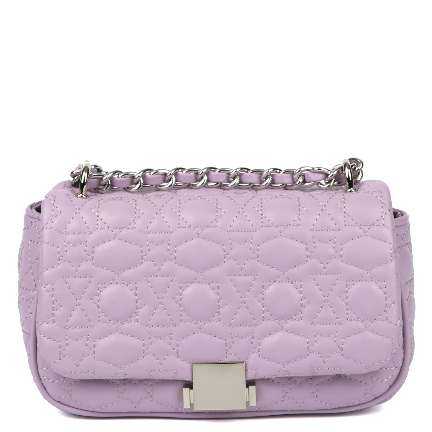 Оригинальная кросс-боди FABRETTI в нежном сиреневом оттенке выполнена из гладкой экокожи и декорирована геометрической стёжкой. Сумка закрывается клапаном с механическим замком. Внутри предусмотрен боковой карман на молнии. Легкая и компактная сумка вмещает все необходимое: телефон, деньги, ключи, банковские карты. Изящный плечевой ремень-цепочку (ширина - 1,5 см) можно носить двумя способами: через плечо или на плече, трансформировав в 2 ручки. Цвет фурнитуры - серебро.