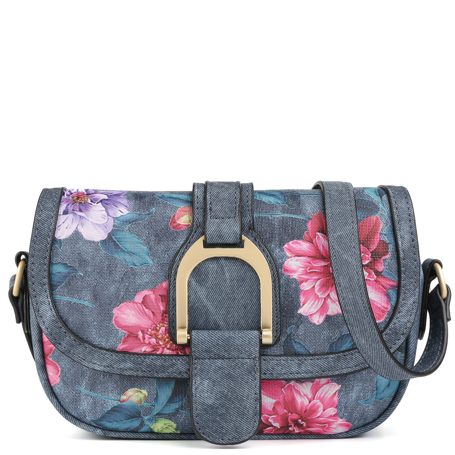 Актуальный тренд на вареный деним с эффектом «винтажа» с ярким акцентным флористическим принтом воплотится в этой сумке FABRETTI. Основное отделение закрывается на клапан. Внутри 2 кармана для мелочей: открытый и на молнии. Съемный плечевой ремень регулируется по длине. Цвет фурнитуры - золото.