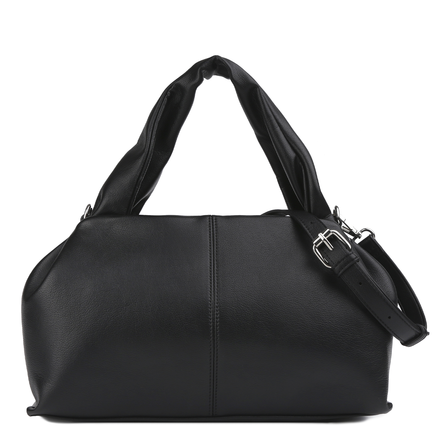 Стильная сумка-тоут FABRETTI в черном оттенке выполнена из высокотехнологичной экокожи с имитацией зернистой фактуры натуральной кожи. Основное отделение закрывается на кнопку. Внутри 2 кармана для мелочей: открытый и на молнии. Ручка позволяет комфортно носить аксессуар в руке. Съемный плечевой ремень регулируется по длине. Цвет фурнитуры - серебро.