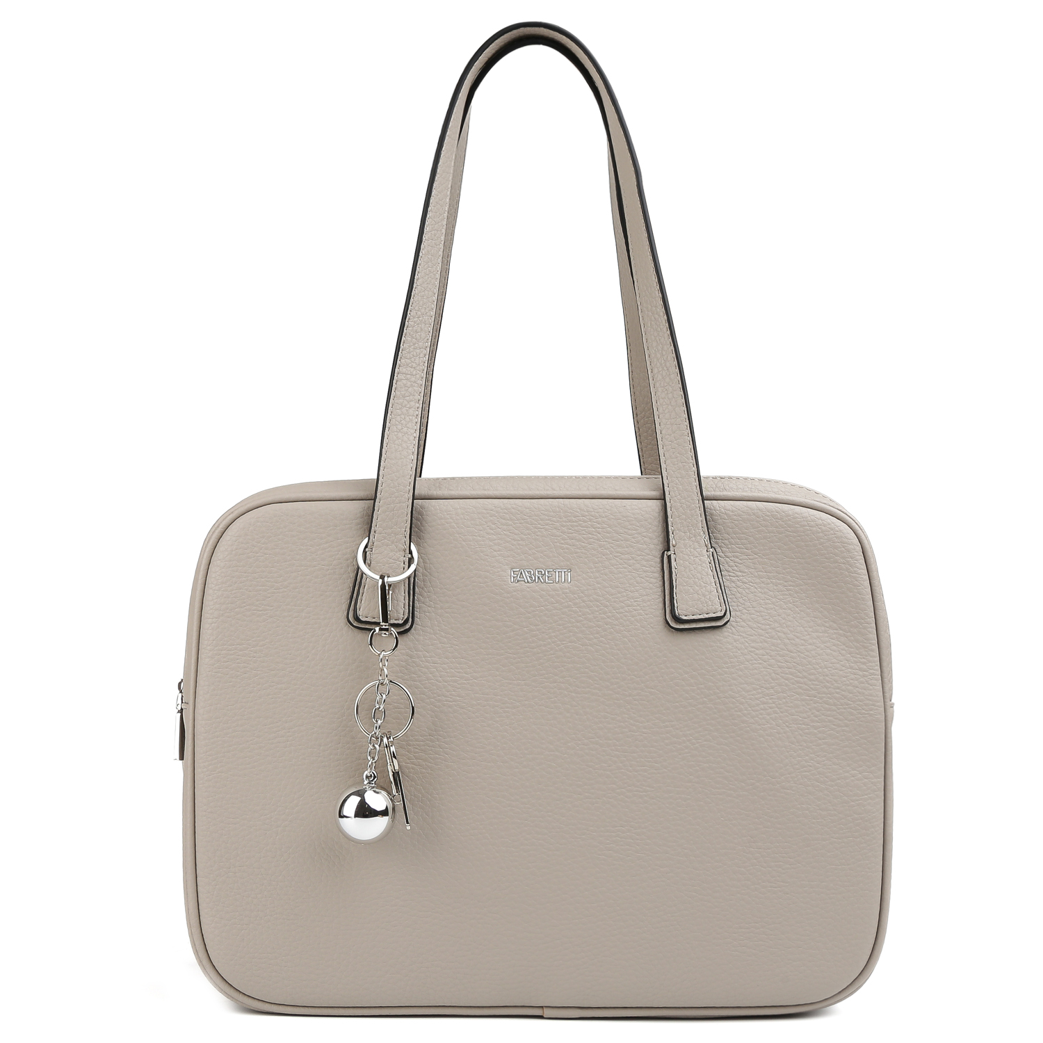 Стильная сумка-тоут FABRETTI в сером оттенке выполнена из высокотехнологичной экокожи с имитацией зернистой фактуры натуральной кожи. Основное отделение закрывается на молнию. Внутри 2 отдела, разделенные карманом на молнии, а также 3 кармана для мелочей: 2 открытых и на молнии. Сумка украшена брелоком. На тыльной стороне предусмотрен карман быстрого доступа на молнии. Две ручки позволяют комфортно носить аксессуар в руке. Цвет фурнитуры - серебро.