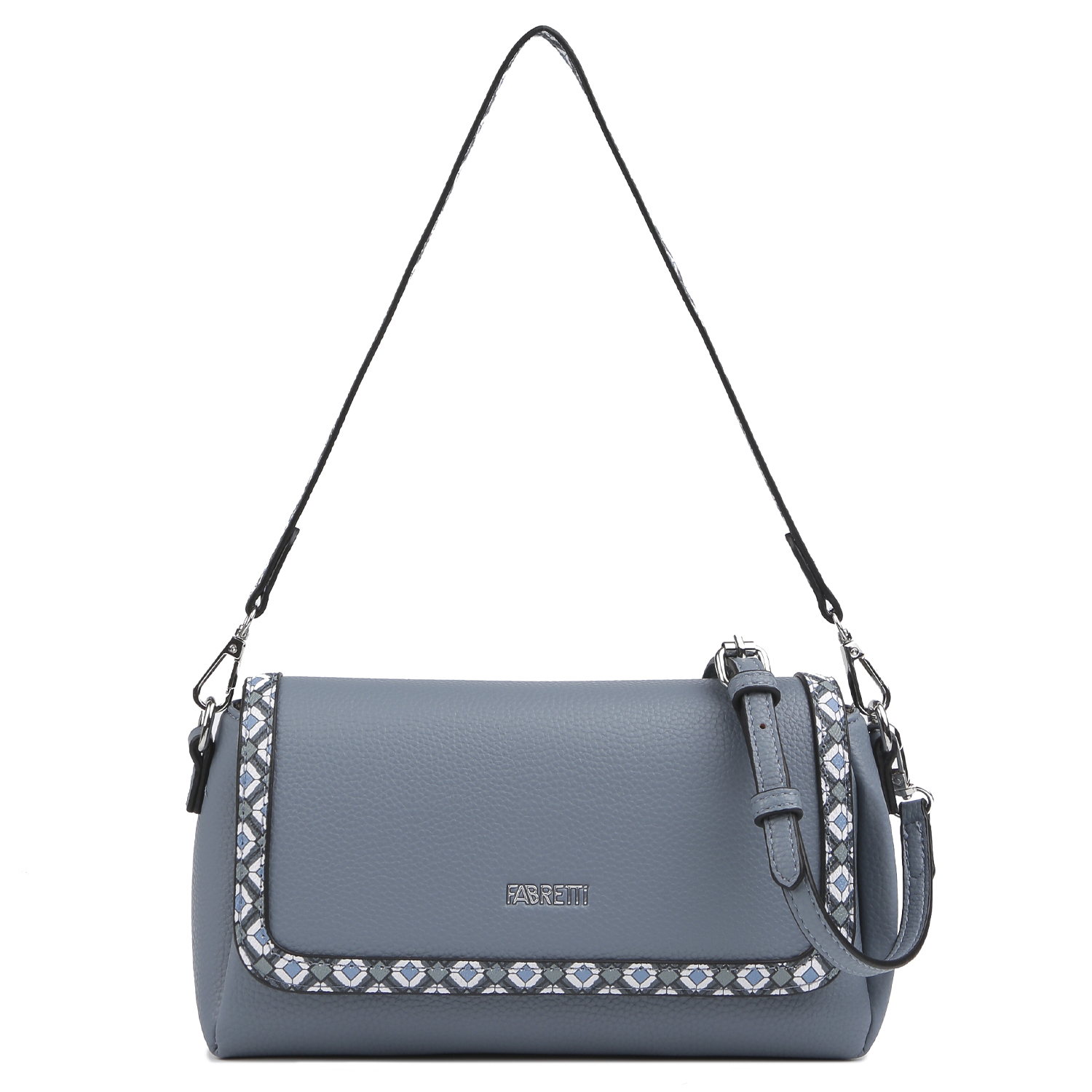 Сумка кросс-боди FABRETTI в синем оттенке выполнена из высококлассной экокожи, идеально повторяющей зернистую фактуру натуральной кожи. Материал изделия приятен на ощупь, прекрасно выдерживает перепады температур и износоустойчив в процессе эксплуатации. Основное отделение закрывается на магнитный клапан. Внутри 2 кармана для мелочей: открытый и на молнии. Съемный плечевой ремень регулируется по длине. Цвет фурнитуры - серебро.