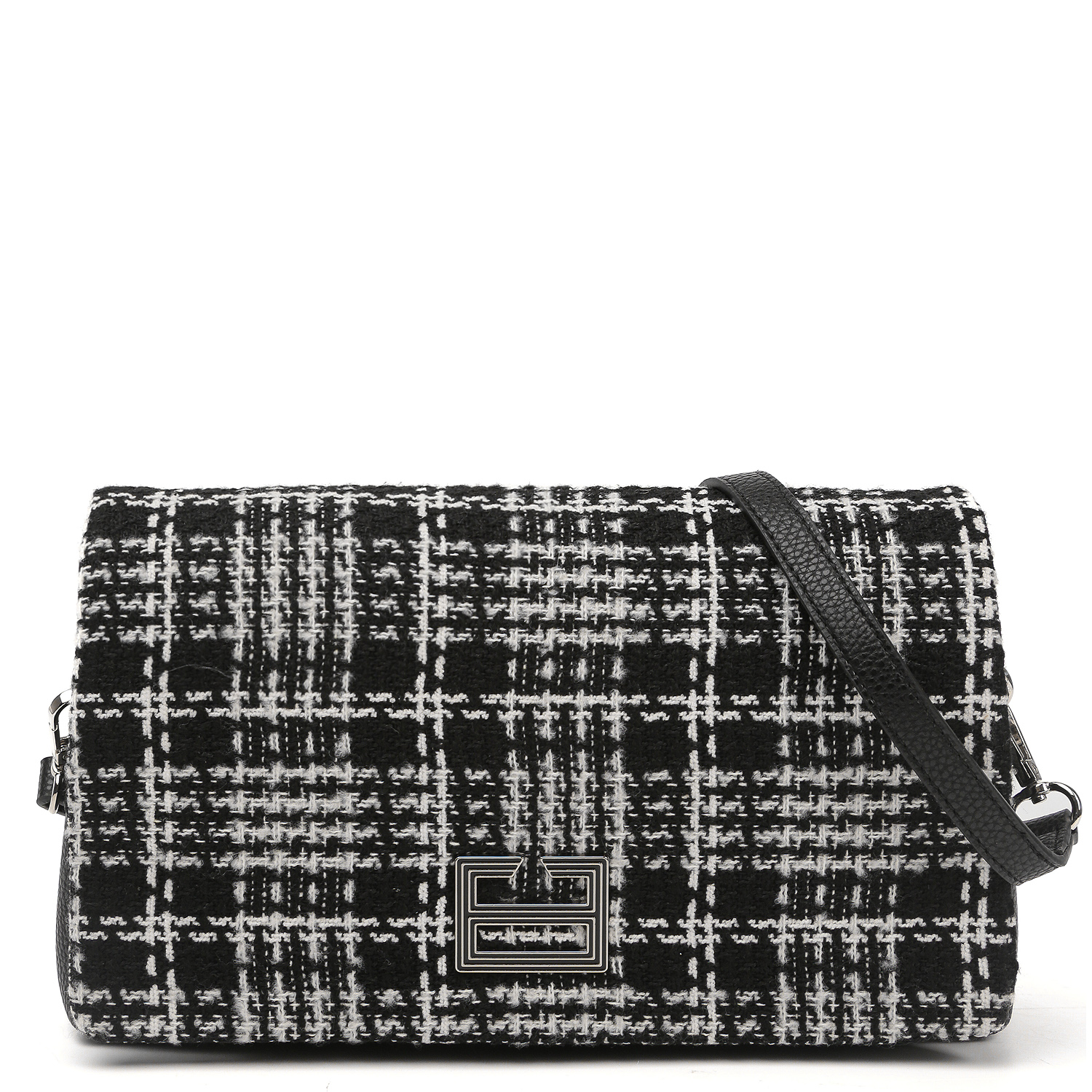 Вместительная кросс-боди FABRETTI в черном цвете выполнена из экокожи зернистой фактуры и декорирована вставкой из твида. Сумка закрывается клапаном с 2 магнитными кнопками. Внутри 2 отдела, разделенные средником на молнии, а также 2 кармана для мелочей: открытый и на молнии. На тыльной стороне предусмотрен карман быстрого доступа. Съемный плечевой ремень регулируется по длине, ширина - 1,5 см. Цвет фурнитуры - золото.