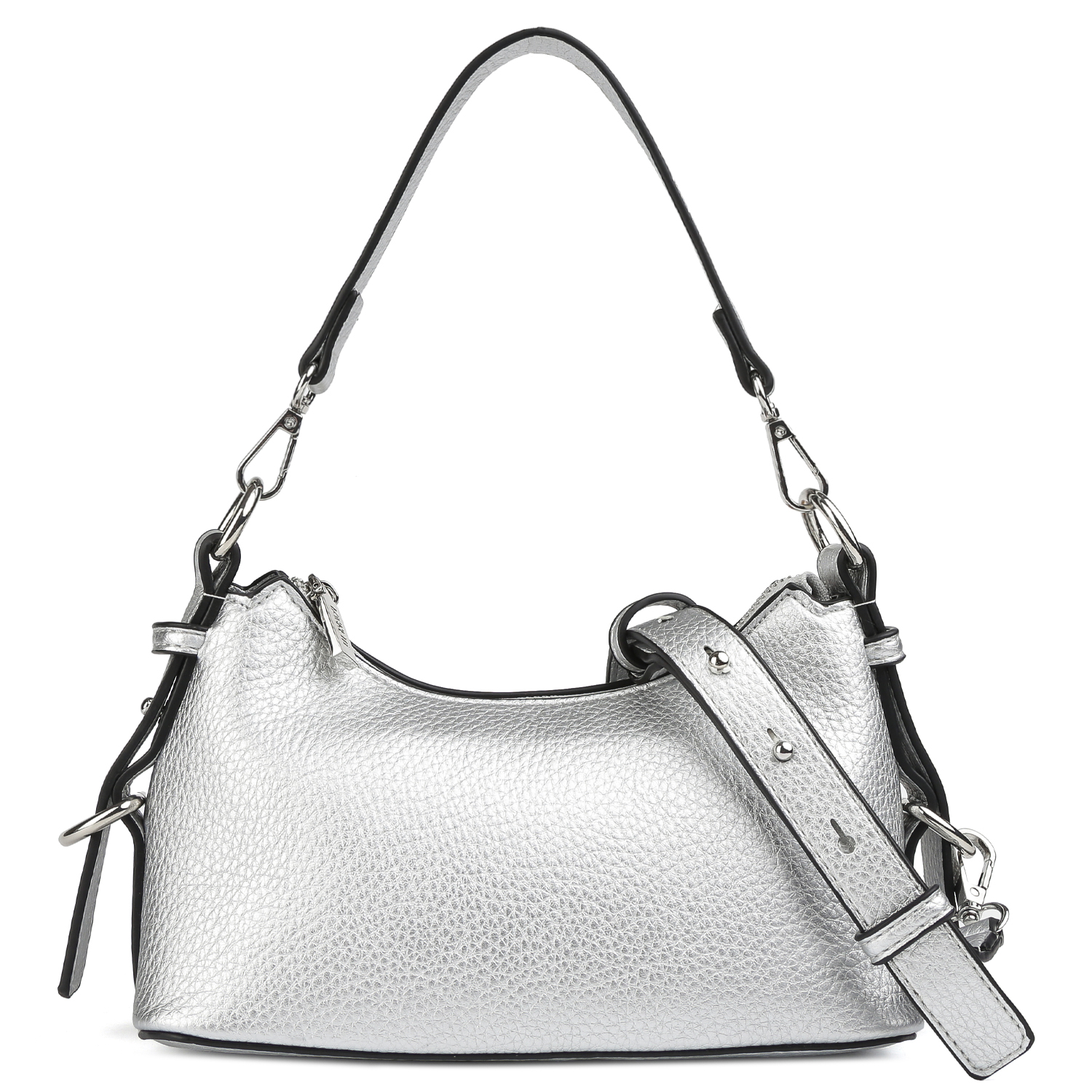 Сумка кросс-боди FABRETTI в серебряном оттенке выполнена из высококлассной экокожи, идеально повторяющей зернистую фактуру натуральной кожи. Материал изделия приятен на ощупь, прекрасно выдерживает перепады температур и износоустойчив в процессе эксплуатации. Основное отделение закрывается на молнию. Внутри 2 кармана для мелочей: открытый и на молнии. Съемный плечевой ремень регулируется по длине. Цвет фурнитуры - серебро.