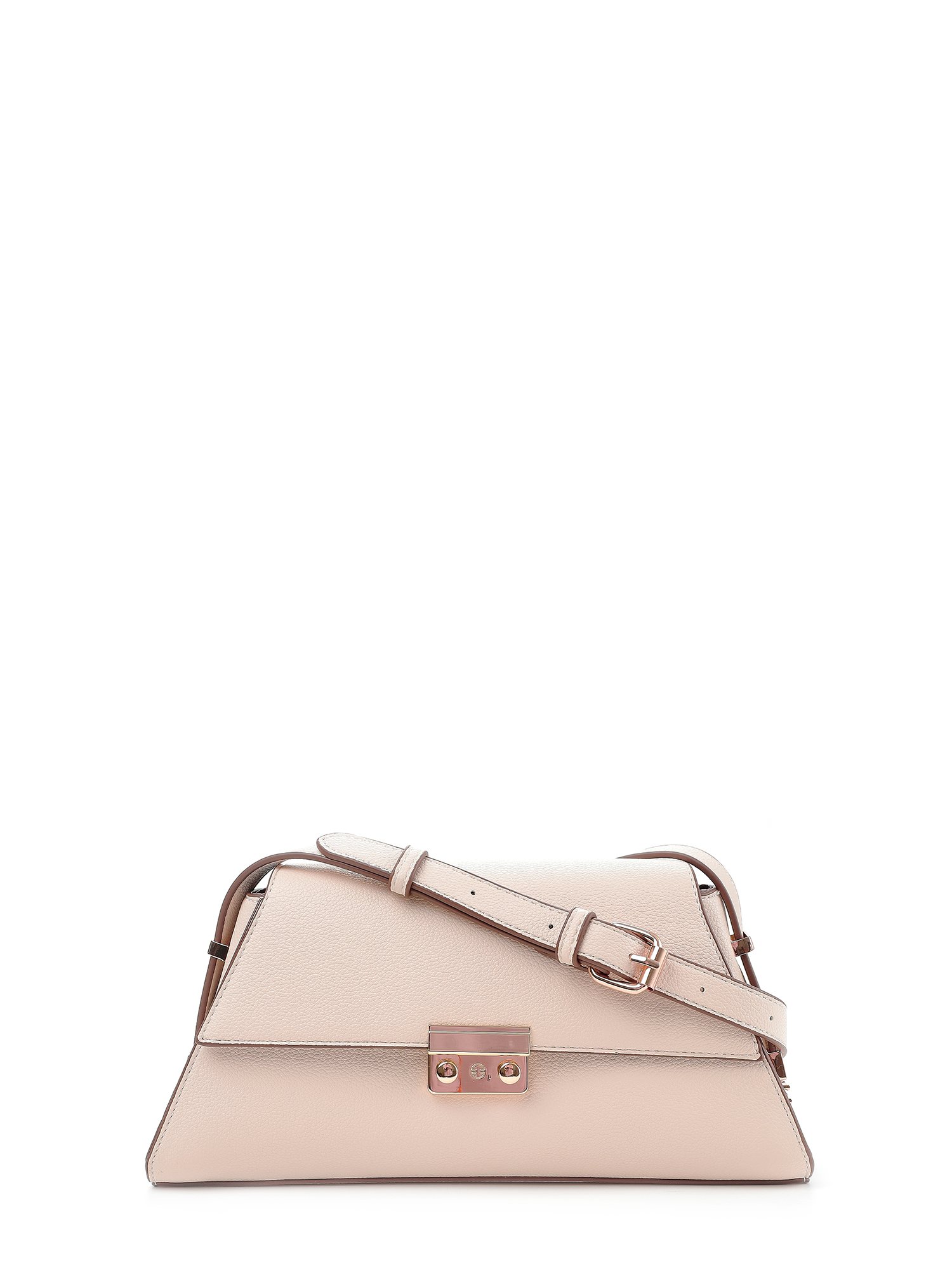 Длинный ремень сумки регулирует пряжкой и дополнительно двумя небольшими замками по бокам сумки.