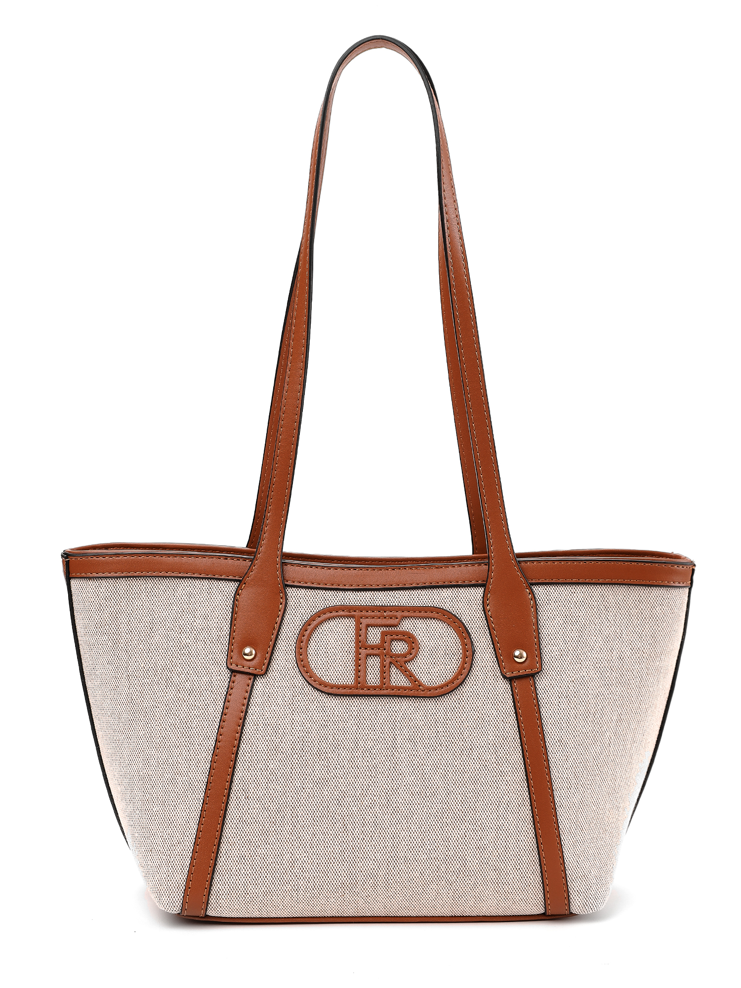 Классическая небольшая городская сумка тоут из коллекции итальянского бренда FABRETTI из бежевого жаккарда с отделкой из гладкой коричневой экокожи. Компактный вариант для повседневного гардероба, который подходит под любой стиль.