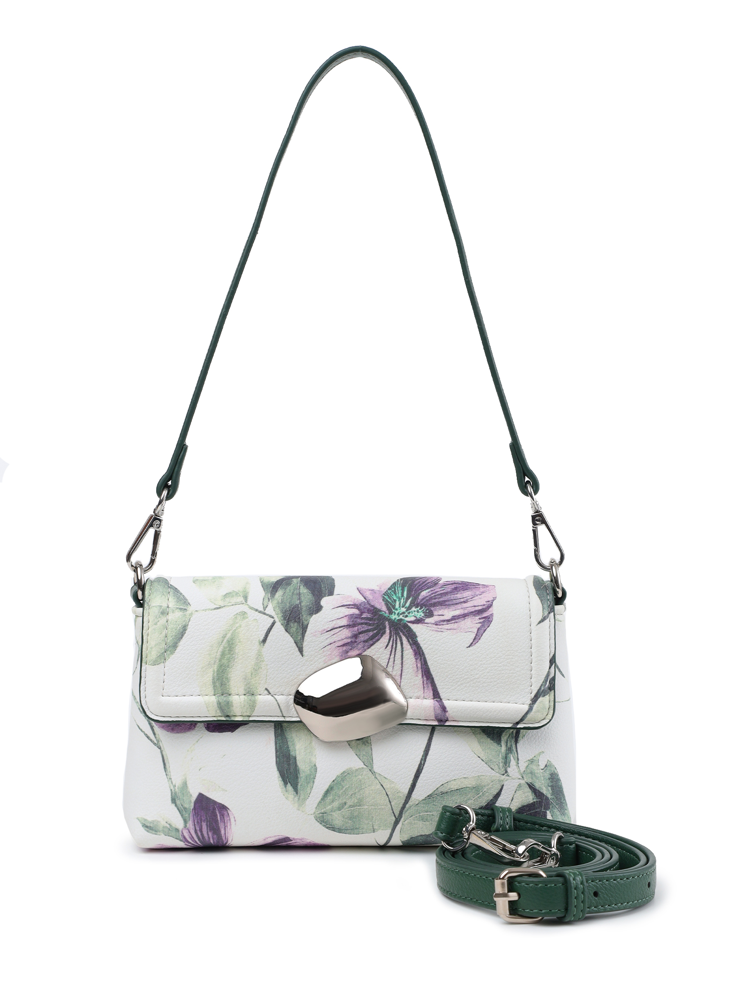 Лаконичная городская сумка кросс-боди итальянского бренда FABRETTI из высококачественной экокожи белого цвета с зернистой фактурой и растительными принтами. Простой классический дизайн делает модель универсальным аксессуаром под любой летний образ. Эффектным акцентом служит объемная металлическая вставка на клапане сумки, а акварельный цветочный принт создает романтическое настроение в образе.