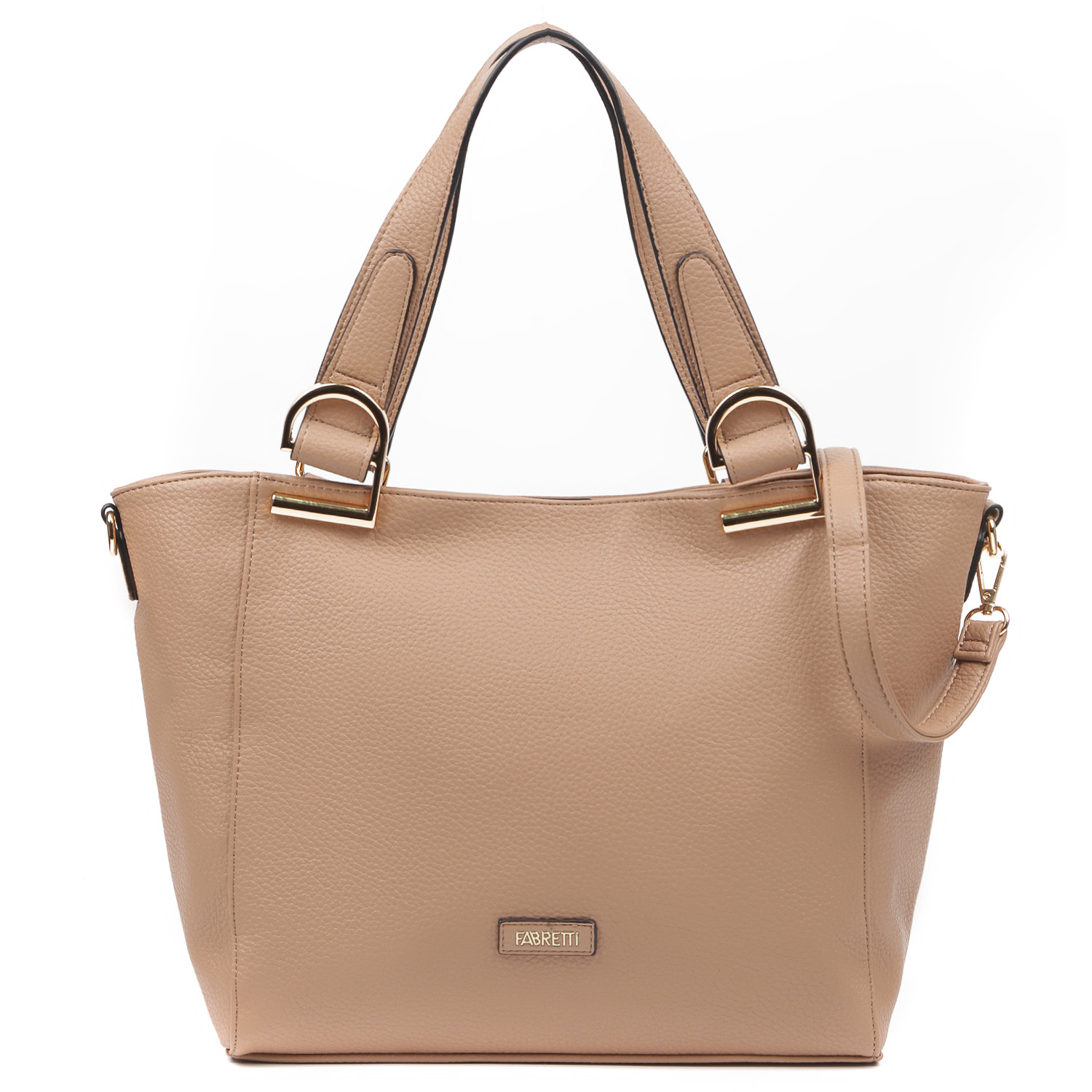 Вместительная сумка-тоут FABRETTI в бежевом оттенке выполнена из экокожи зернистой фактуры. Основное отделение закрывается на молнию. Внутри 2 кармана для мелочей: открытый и на молнии. На тыльной стороне предусмотрен карман быстрого доступа на молнии. Две ручки позволяют носить аксессуар в руке или на локте, ширина - 2 см. В комплект входит съемный плечевой ремень, который регулируется по длине, ширина - 2 см. Модель вмещает формат А4. Цвет фурнитуры - золото.