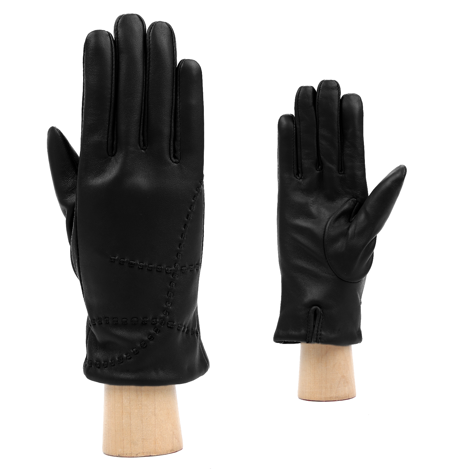 Лицевая сторона декорирована замшевой стежкой с геометрическим узором. На тыльной стороне манжеты небольшая шлица для вашего комфорта перчаток.