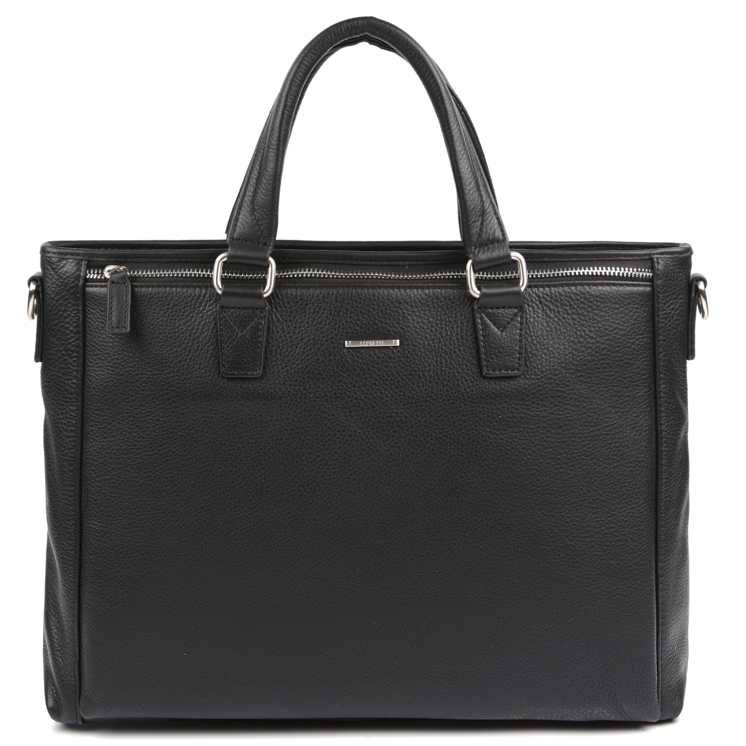 Стильная мужская сумка для документов FABRETTI выполнена из натуральной зернистой кожи черного цвета. Модель имеет две ручки и съемный плечевой ремень, длина которого регулируется, ширина - 3 см.