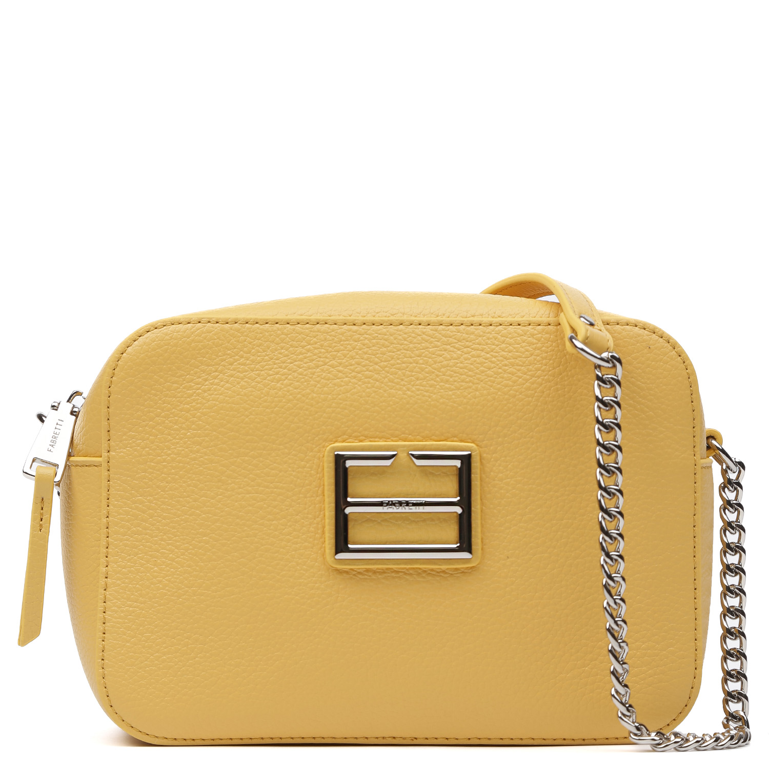 Компактная кросс-боди FABRETTI в желтом оттенке выполнена из натуральной высококачественной зернистой кожи, приятной на ощупь. Основное отделение закрывается на полукруглую молнию с кожаным поводком. Внутри 2 боковых кармана: открытый и на молнии. На тыльной стороне предусмотрен карман быстрого доступа на молнии. Лицевая сторона декорирована оригинальной фурнитурой. Изящный плечевой ремень сочетает металлическую цепочку со вставками из натуральной кожи. Цвет фурнитуры - серебро.