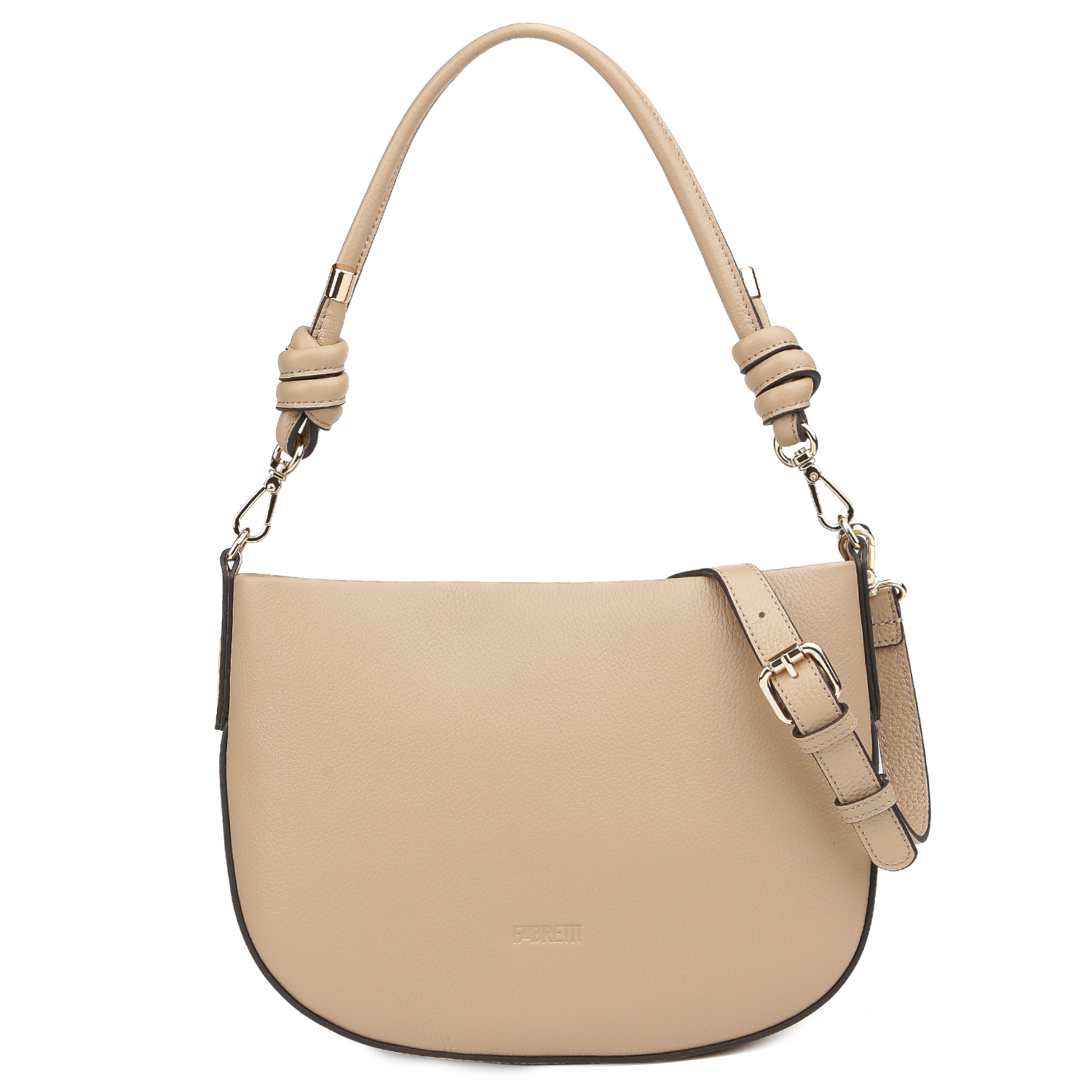 Стильная сумка на плечо FABRETTI выполнена из натуральной высококачественной кожи, приятной на ощупь. Основное отделение закрывается на молнию. Внутри расположен открытый карман для мелочей и второй карман на молнии. На тыльной стороне предусмотрен карман быстрого доступа на молнии. Два плечевых ремня регулируются по длине. Цвет фурнитуры - золото.