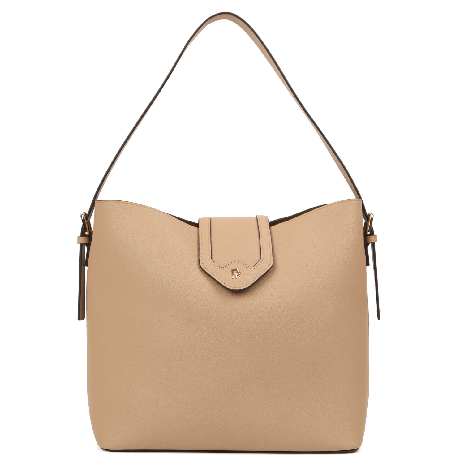 Вместительная сумка на плечо FABRETTI в бежевом оттенке выполнена из натуральной зернистой кожи. Основное отделение закрывается хлястиком на магнитной кнопке. Внутри 2 боковых кармана для мелочей: открытый и на молнии. Плечевой ремень регулируется по длине, ширина - 2,5 см. Цвет фурнитуры - золото.