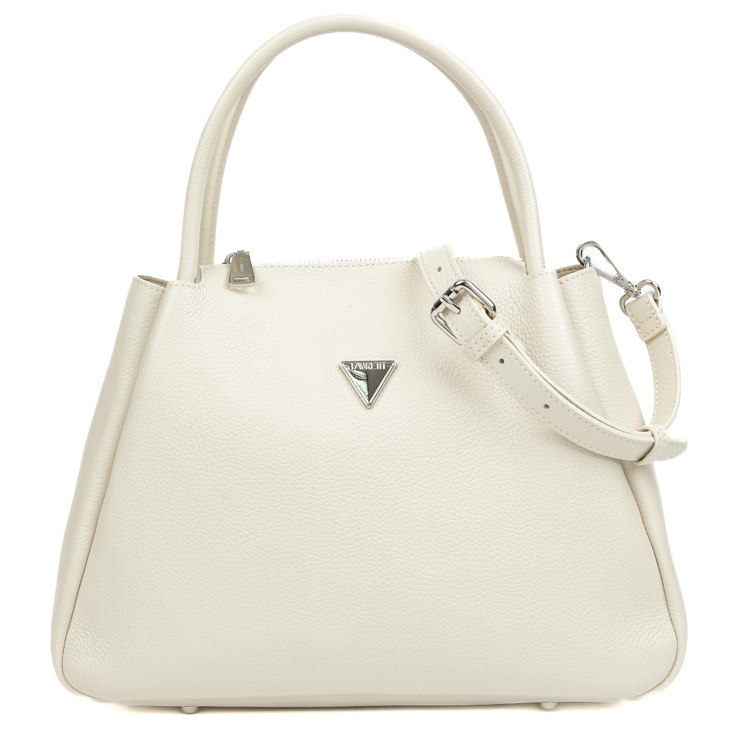 Стильная сумка-тоут FABRETTI в светло-бежевом оттенке выполнена из натуральной зернистой кожи. Основное отделение закрывается на молнию с металлическим поводком. Внутри есть 2 вместительных открытых кармана. Дно сумки защищают 4 металлические ножки. Две плотные ручки позволяют комфортно носить аксессуар в руке. В комплекте идет съемный плечевой ремень, регулируемый по длине, ширина - 2 см. Цвет фурнитуры - серебро.