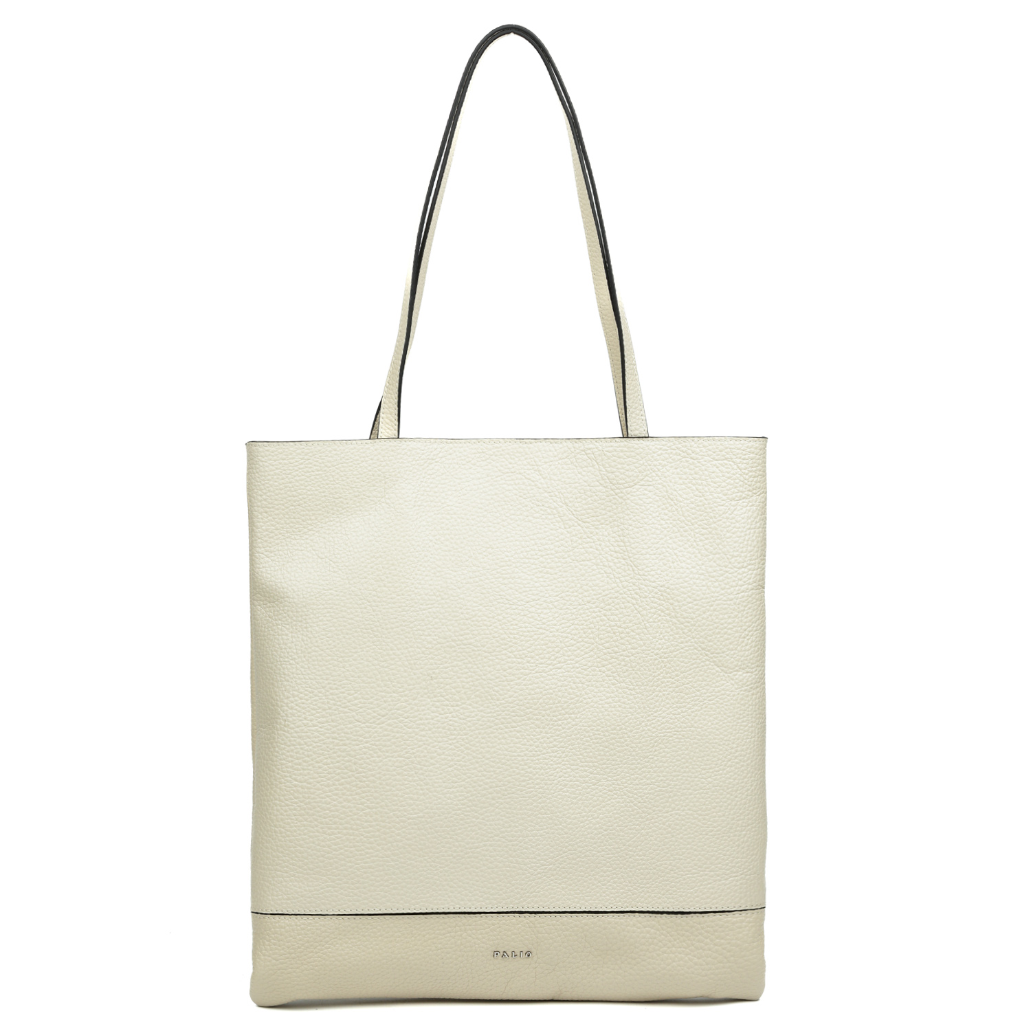 Вместительная сумка-шоппер PALIO в светло-бежевом оттенке выполнена из натуральной зернистой кожи. Основное отделение закрывается на потайной магнитный замок. Внутри 3 боковых кармана для мелочей: 2 открытых и на молнии. На тыльной стороне предусмотрен карман быстрого доступа на молнии. Две удлиненные ручки (ширина - 1 см) позволяют комфортно носить аксессуар на плече. Модель вмещает формат А4. Цвет фурнитуры - серебро.