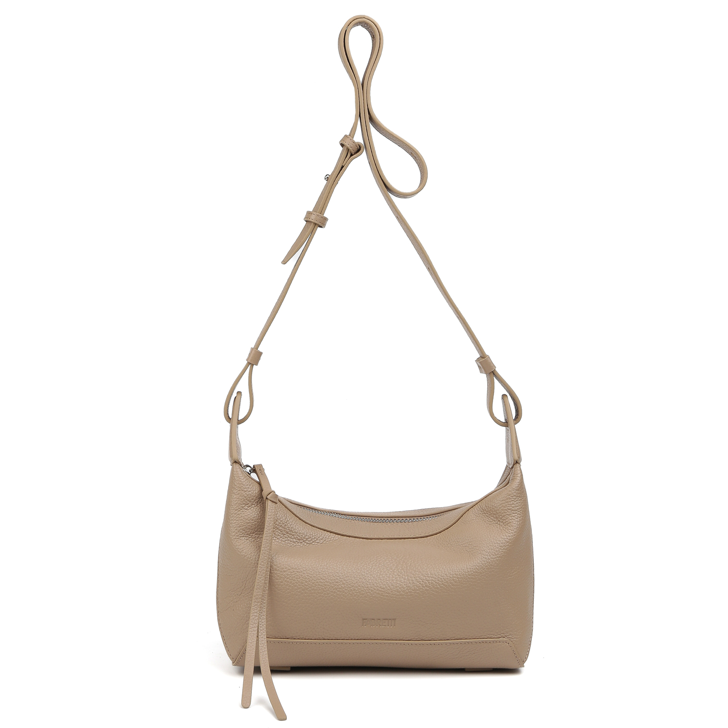 Оригинальная сумка через плечо FABRETTI из натуральной высококачественной зернистой кожи, приятной на ощупь, в бежевом цвете будет незаменимой, когда нужно взять самое необходимое. Сумка имеет застежку на молнии. Внутри есть слот для банковских карт. Съемный плечевой ремень, регулируется по длине. Цвет фурнитуры - серебро.