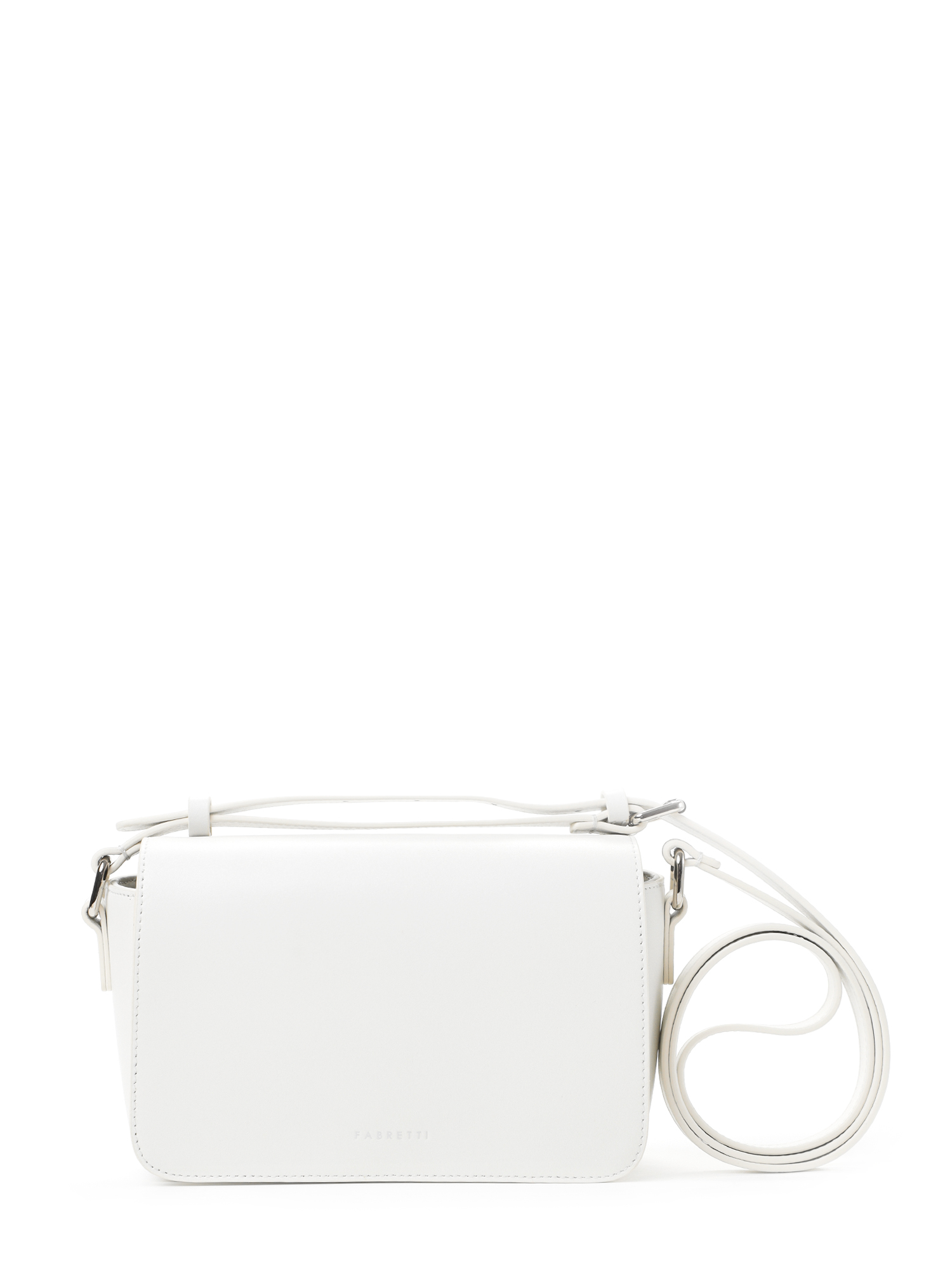 Женская сумка кросс-боди итальянского бренда FABRETTI в максимально простом и лаконичном дизайне идеально дополняет повседневный городской гардероб. Сумка выполнена из высококачественной гладкой кожи кальф белого цвета с легким бежевым оттенком в прямоугольной форме с плавными изгибами линий.