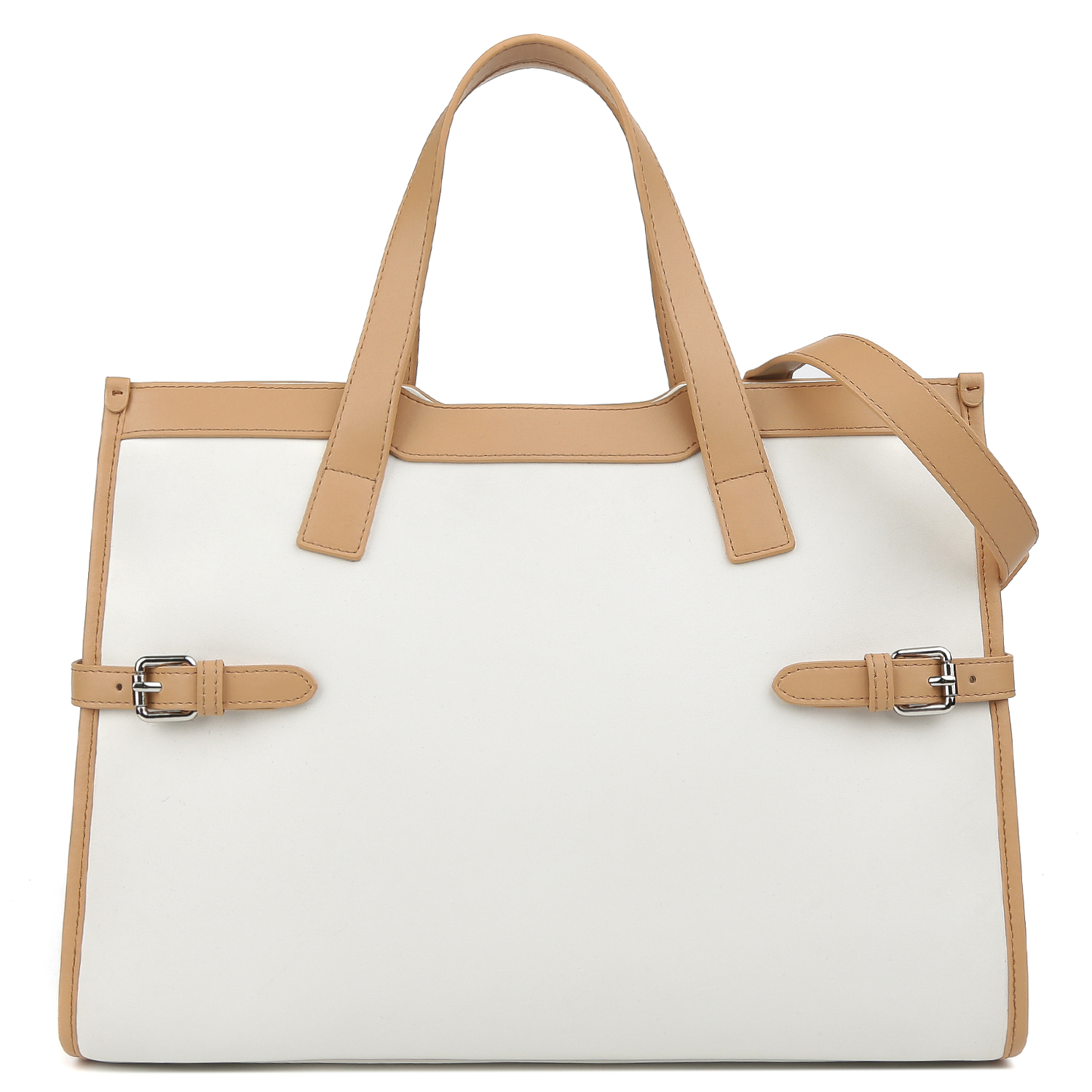 Стильная сумка-тоут FABRETTI выполнена из натуральной высококачественной зернистой кожи, приятной на ощупь, и гармонично сочетает белый и бежевый оттенки. Сумка закрывается на молнию с кожаным поводком. Внутри 2 отдела, разделенные карманом на молнии, а также 2 кармана для мелочей: открытый и на молнии. Две ручки позволяют комфортно носить аксессуар в руке. Съемный плечевой ремень регулируется по длине. Цвет фурнитуры - серебро.