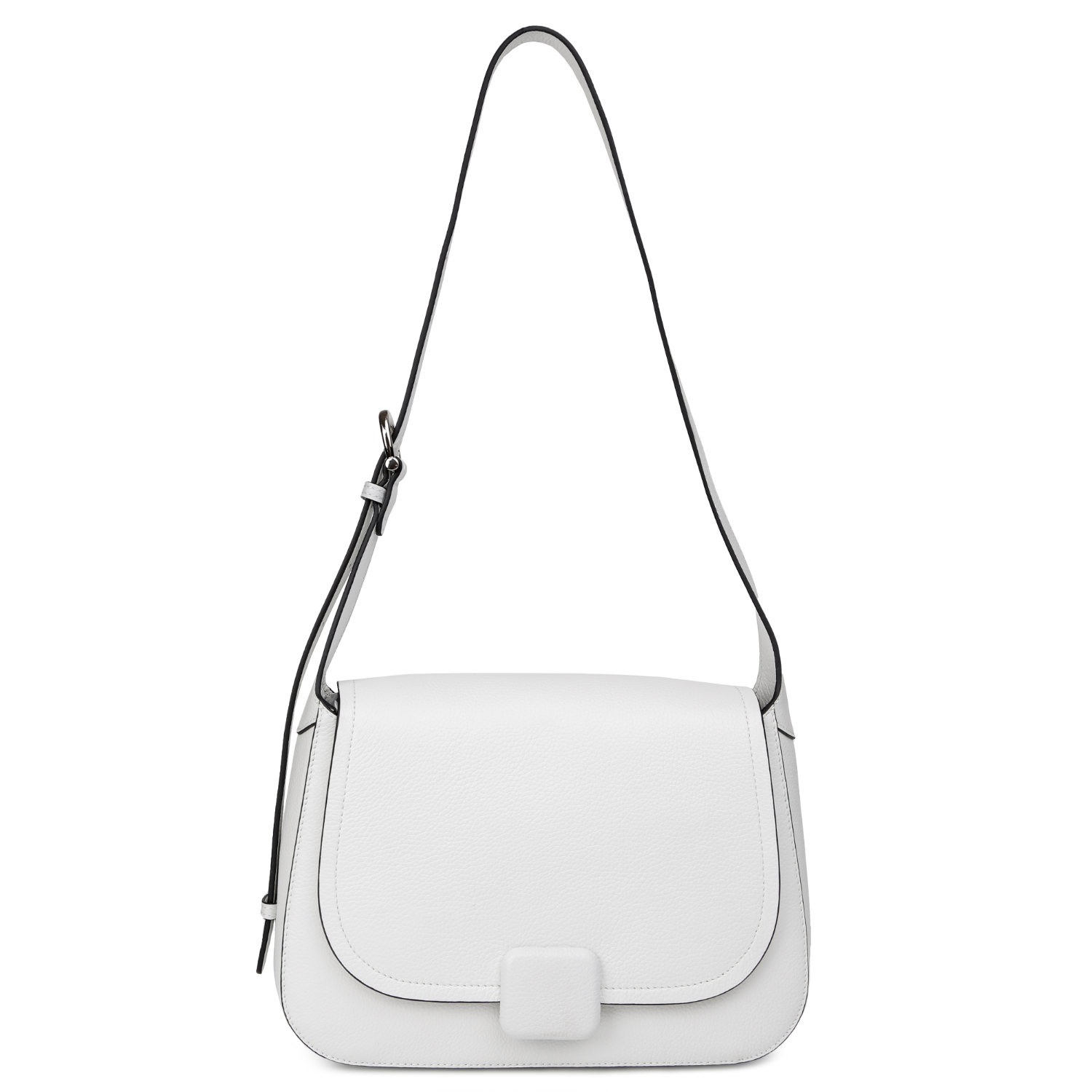 Сумка на плечо FABRETTI в белом цвете выполнена из натуральной высококачественной зернистой кожи, приятной на ощупь. Основное отделение закрывается клапаном с магнитной кнопкой. Внутренняя часть обладает приятной на ощупь фактурой, напоминающей велюр. Внутри 2 кармана для мелочей: открытый и на молнии. На тыльной стороне предусмотрен открытый карман быстрого доступа. Плечевой ремень регулируется по длине, ширина - 2 см. Цвет фурнитуры - серебро.