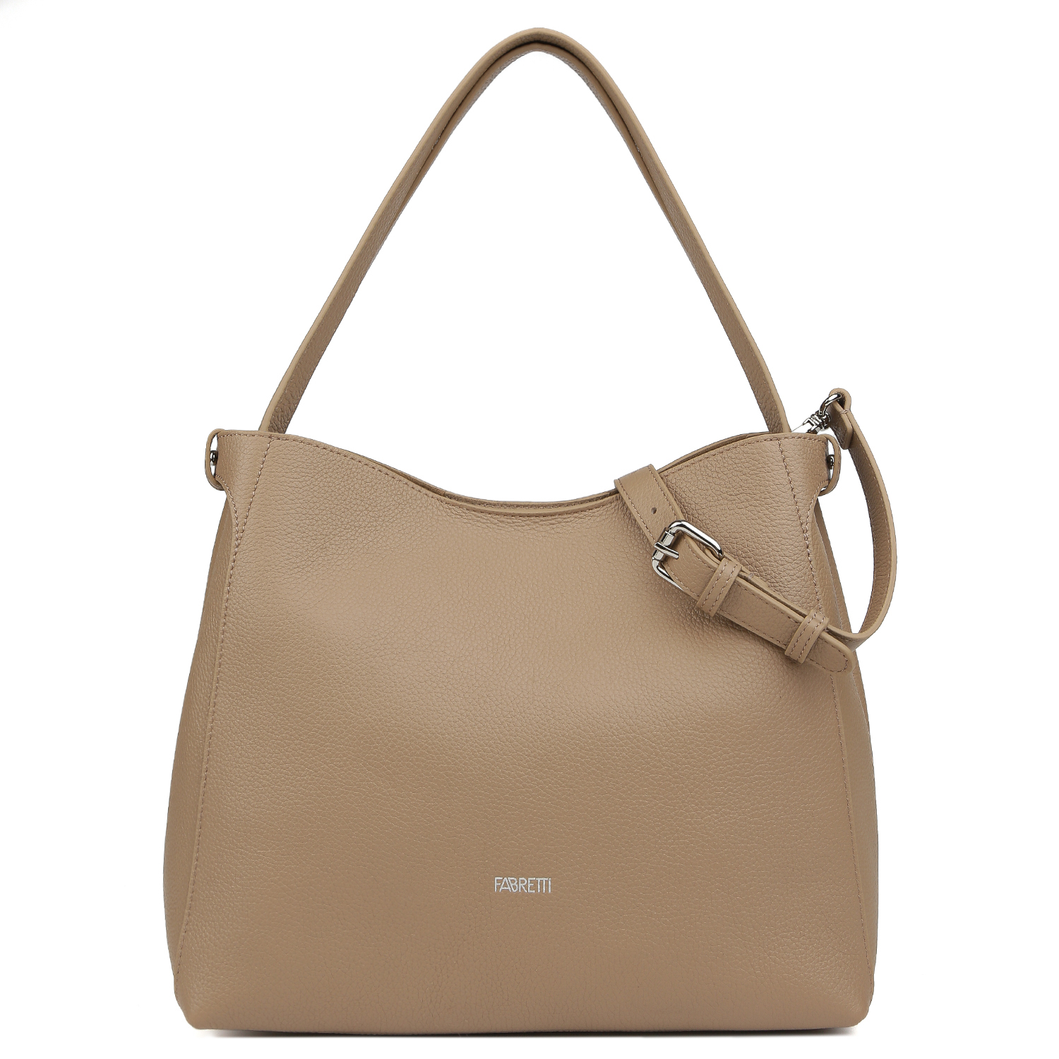 Стильная сумка на плечо FABRETTI выполнена из натуральной высококачественной кожи, приятной на ощупь, в бежевом цвете. Основное отделение закрывается на молнию. Ее плавные линии и удобная конструкция обеспечивают максимальный комфорт, а регулируемый плечевой ремень позволяет носить ее так, как вам удобно. Молния надежно охраняет ваши вещи, а изысканная фурнитура добавляет ей нотку блеска и элегантности. Эта сумка – ваш верный спутник в повседневных делах, всегда готовый подчеркнуть ваш изысканный стиль. Цвет фурнитуры - серебро.