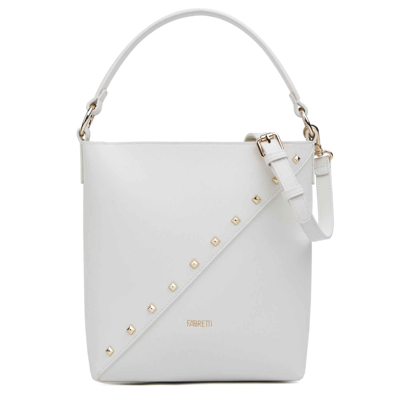 Стильная сумка кросс-боди FABRETTI в светло-бежевом цвете выполнена из натуральной высококачественной гладкой кожи, приятной на ощупь, и на лицевой стороне декорирована логотипом бренда, а также металлическими вставками в виде маленьких квадратов. Основное отделение за крывается на молнию с поводком. Внутри 2 кармана для мелочей: открытый и на молнии. Цвет фурнитуры - золото.