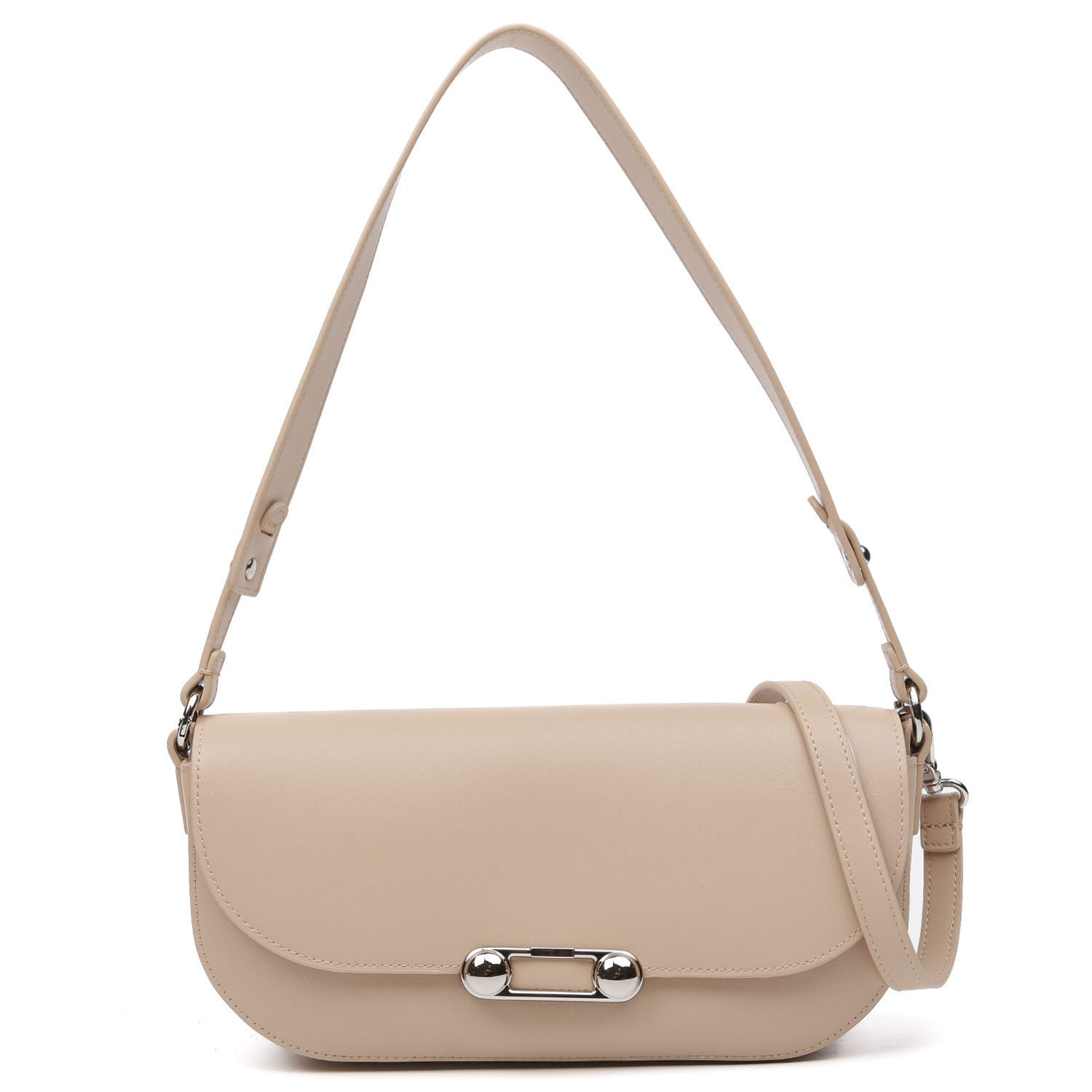 Стильная сумка на плечо FABRETTI в бежевом оттенке выполнена из натуральной высококачественной кожи плотной гладкой фактуры, приятной на ощупь. Отлично держит форму. Сумка закрывается клапаном на магнитной кнопке. Внутри 2 кармана для мелочей: открытый и на молнии. Лицевая сторона декорирована оригинальной фурнитурой. В комплекте 2 съемных плечевых ремня. Длина первого - 55 см, ширина - 2,5 см; второй плечевой ремень регулируется по длине, ширина - 1,5 см. Цвет фурнитуры - серебро.