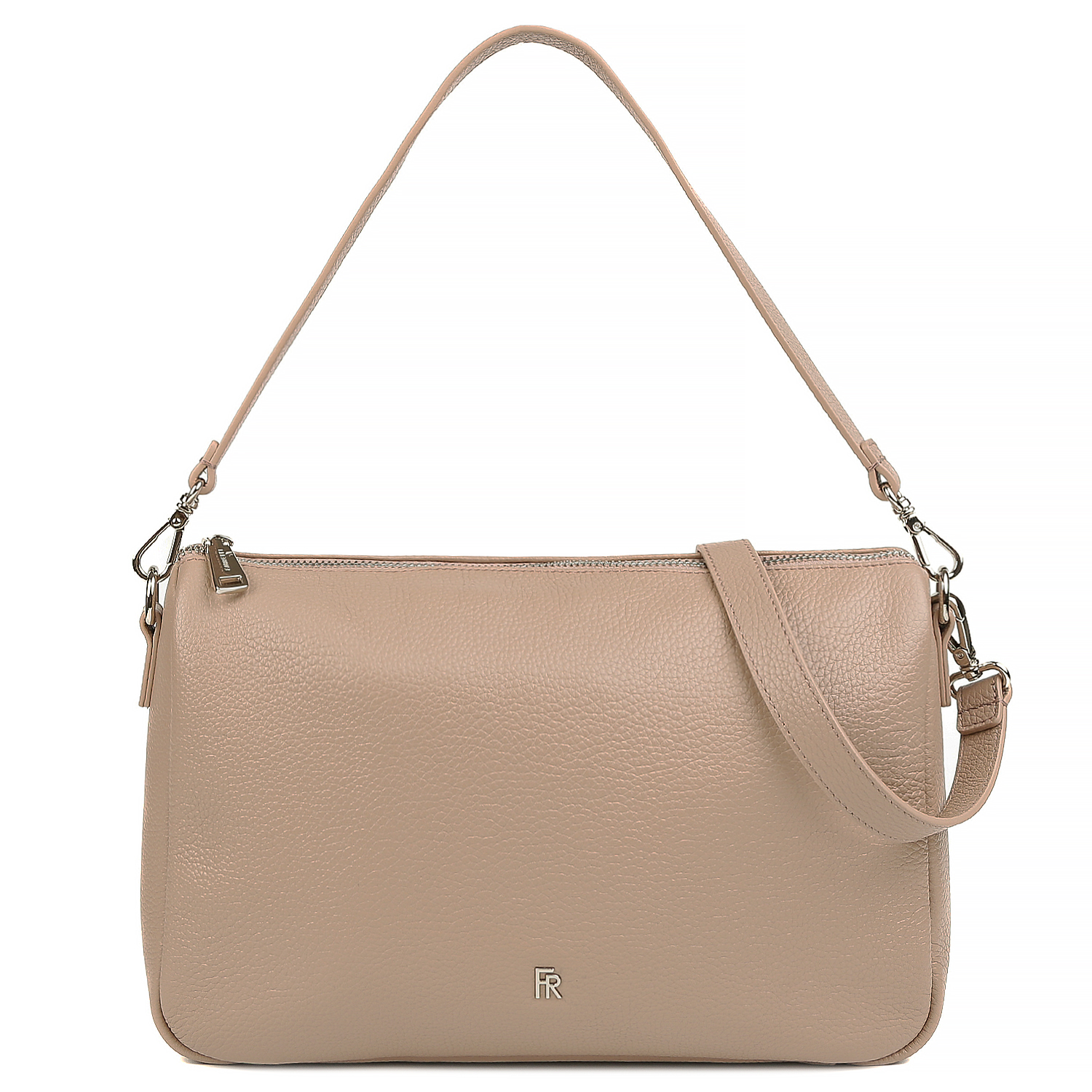 Компактная и стильная сумка на плечо FABRETTI в розово-сером цвете выполнена из натуральной высококачественной зернистой кожи, приятной на ощупь. Основное отделение на молнии, надежно защищающее ваши вещи, и два практичных кармана (открытый и на молнии) обеспечивают безупречную организацию. На тыльной стороне предусмотрен карман быстрого доступа на молнии. Кожаный поводок и серебристая фурнитура добавляют сумке изысканный акцент. Невероятно стильная и практичная – эта сумка станет незаменимым аксессуаром в вашем гардеробе. Цвет фурнитуры - серебро.