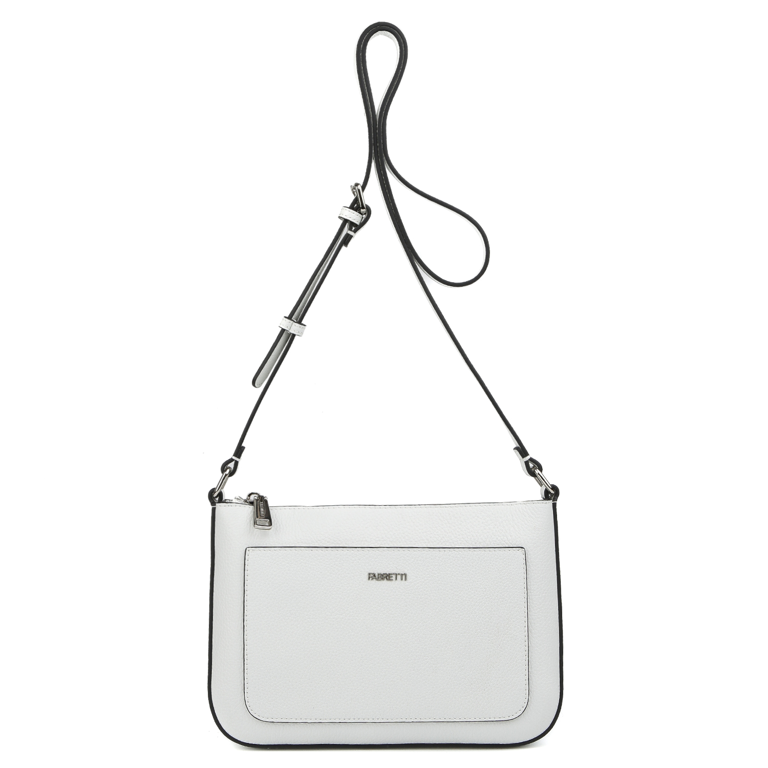 Стильная сумка кросс-боди FABRETTI в белом цвете выполнена из натуральной высококачественной зернистой кожи, приятной на ощупь. Основное отделение закрывается на молнию с металлическим поводком. На лицевой стороне предусмотрен карман быстрого доступа. Цвет фурнитуры - серебро.