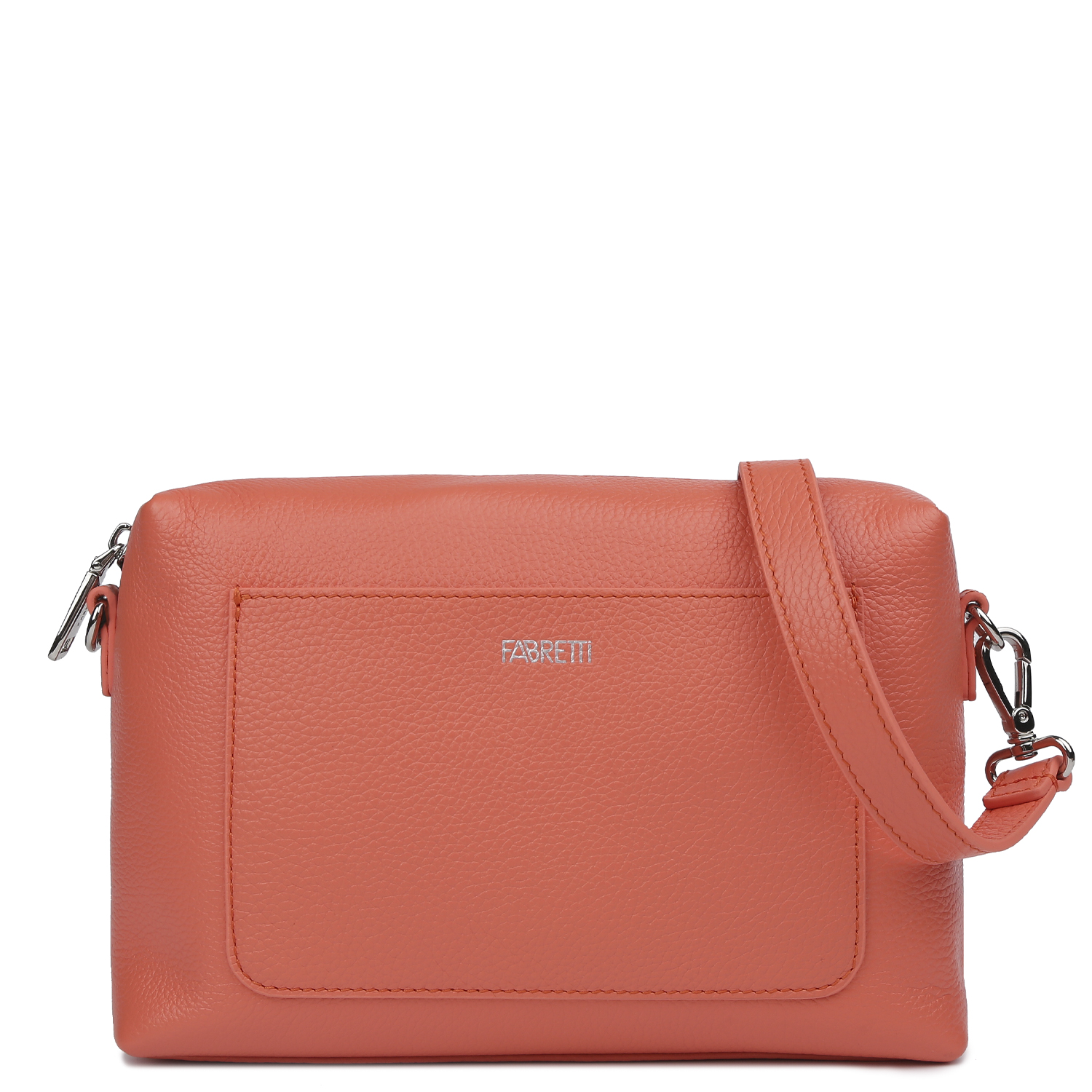 Компактная сумка кросс-боди FABRETTI в коралловом цвете выполнена из натуральной высококачественной зернистой кожи, приятной на ощупь. Основное отделение закрывается на полукруглую молнию с металлическим поводком. Внутри 2 кармана для мелочей: открытый и на молнии. На лицевой стороне есть открытый карман. На тыльной стороне - карман быстрого доступа на молнии. Плечевой ремень регулируется по длине, ширина - 2 см. Цвет фурнитуры - серебро.
