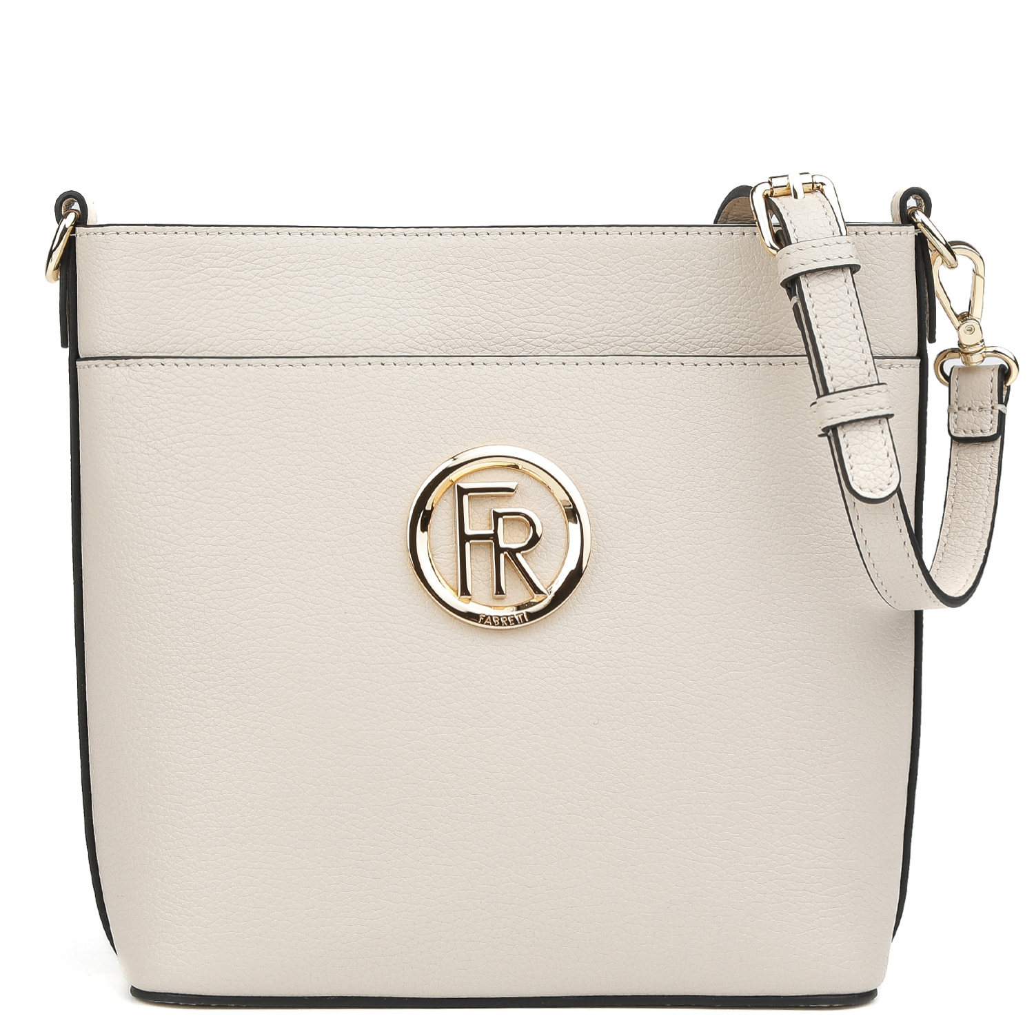 Сумка-кроссбоди FABRETTI светло-бежевого цвета изготовлена из натуральной высококачественной зернистой кожи, приятной на ощупь. Основное отделение закрывается на молнию, обеспечивая надежность хранения содержимого. Внутри предусмотрен карман на молнии для более ценных вещей. На лицевой стороне расположен карман быстрого доступа на кнопке. На тыльной стороне находится карман на молнии. Сумку украшает фурнитура с логотипом бренда. Конструкция сумки включает в себя регулируемый плечевой ремень, позволяющий носить сумку на удобной длине. Цвет фурнитуры - золото.