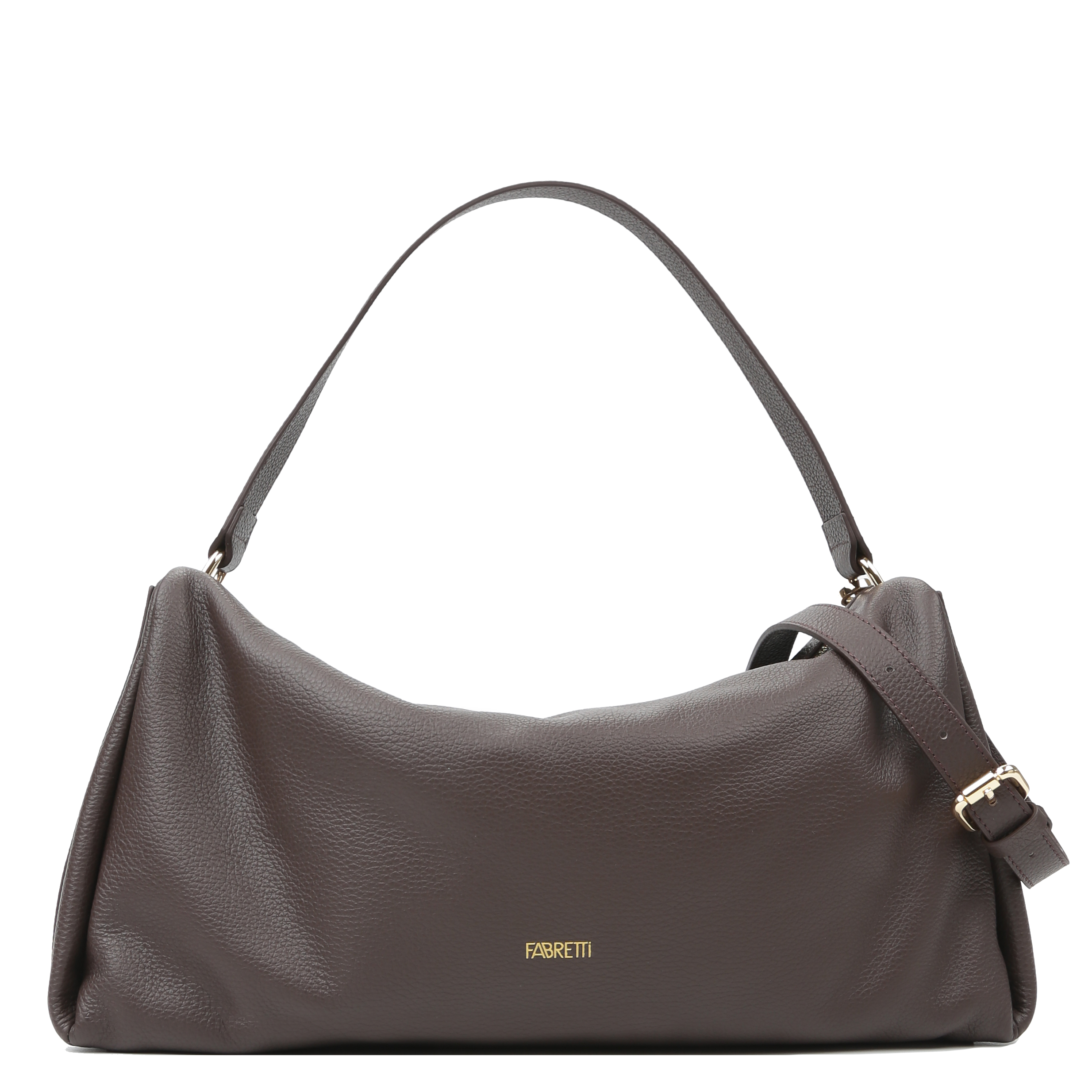 Элегантная сумка FABRETTI в благородном шоколадном оттенке. Сделана из натуральной высококачественной зернистой кожи приятной на ощупь фактуры. Закрывается на молнию с кожаным пуллером. Во внутреннем отделении имеются два кармана: на молнии и быстрого доступа. Выполнена в трендовой удлиненной форме <<багет>> (<<такса>>). Также, сумка укомплектована плечевым ремнем с возможностью регулировки за счет пряжки, длина - 128 см. Благодаря чему, сумку можно носить как кросс-боди, или же на плече. Материал подкладки: полиэстер. Цвет фурнитуры - золото.