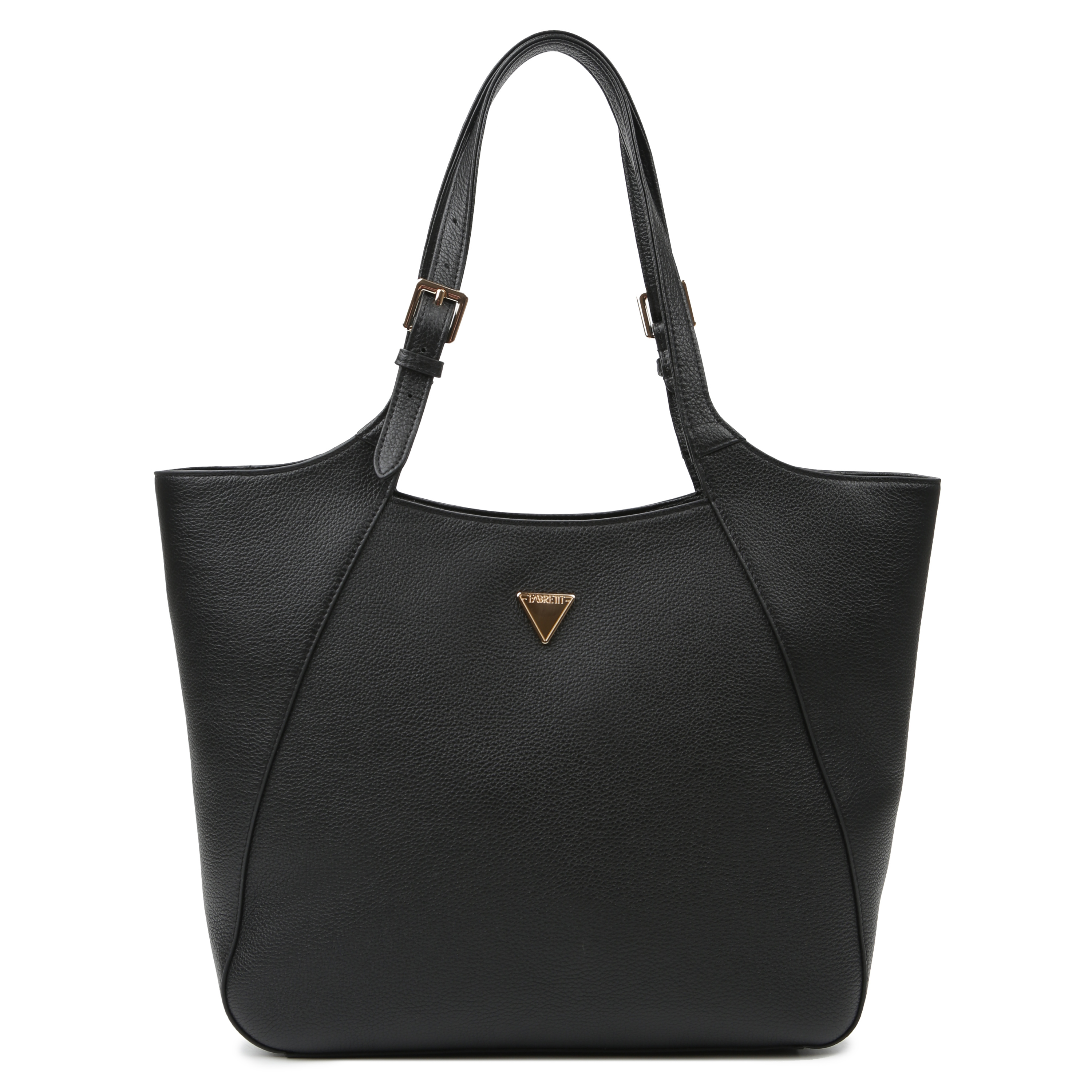 Элегантная деловая сумка-тоут FABRETTI черного цвета. Выполнена из зернистой натуральной кожи. Две удобные ручки с возможностью регулировки длины украшены пряжками. Карман на молнии с тыльной стороны. Основное отделение закрывается на молнию и имеет два основных отсека. Также, внутри расположены три дополнительных кармана: один на молнии и два быстрого доступа. Спереди сумку украшает металлический логотип. Вся фурнитура - золотого цвета. Материал подкладки: полиэстер. Изделие вмещает формат A4.