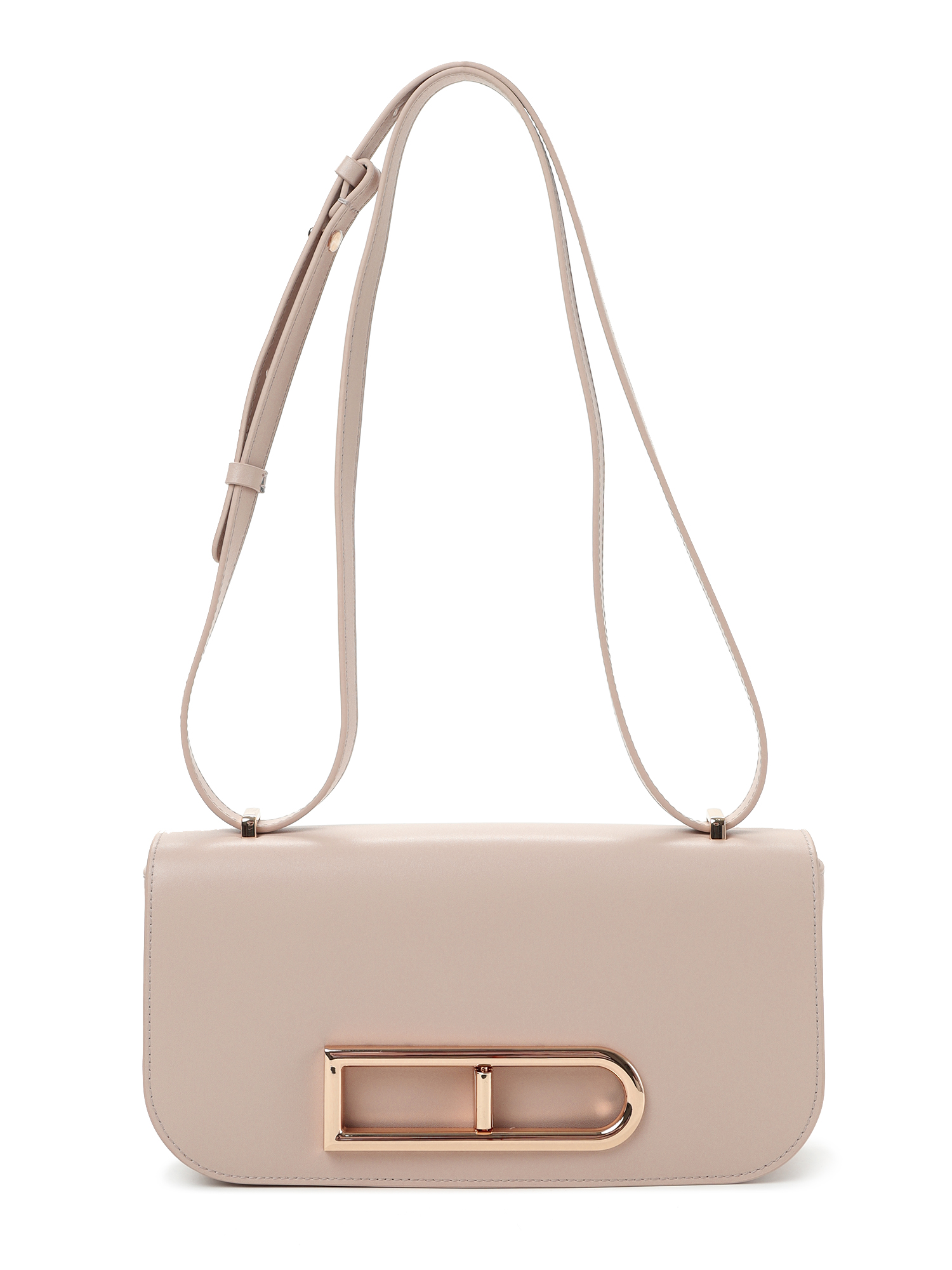 Модель закрывается на клапан с необычным поворотным замком в золотистой металлической рамке. Внутри отделения два кармана – открытый и на молнии. На тыльной стороне сумки расположен открытый карман.
