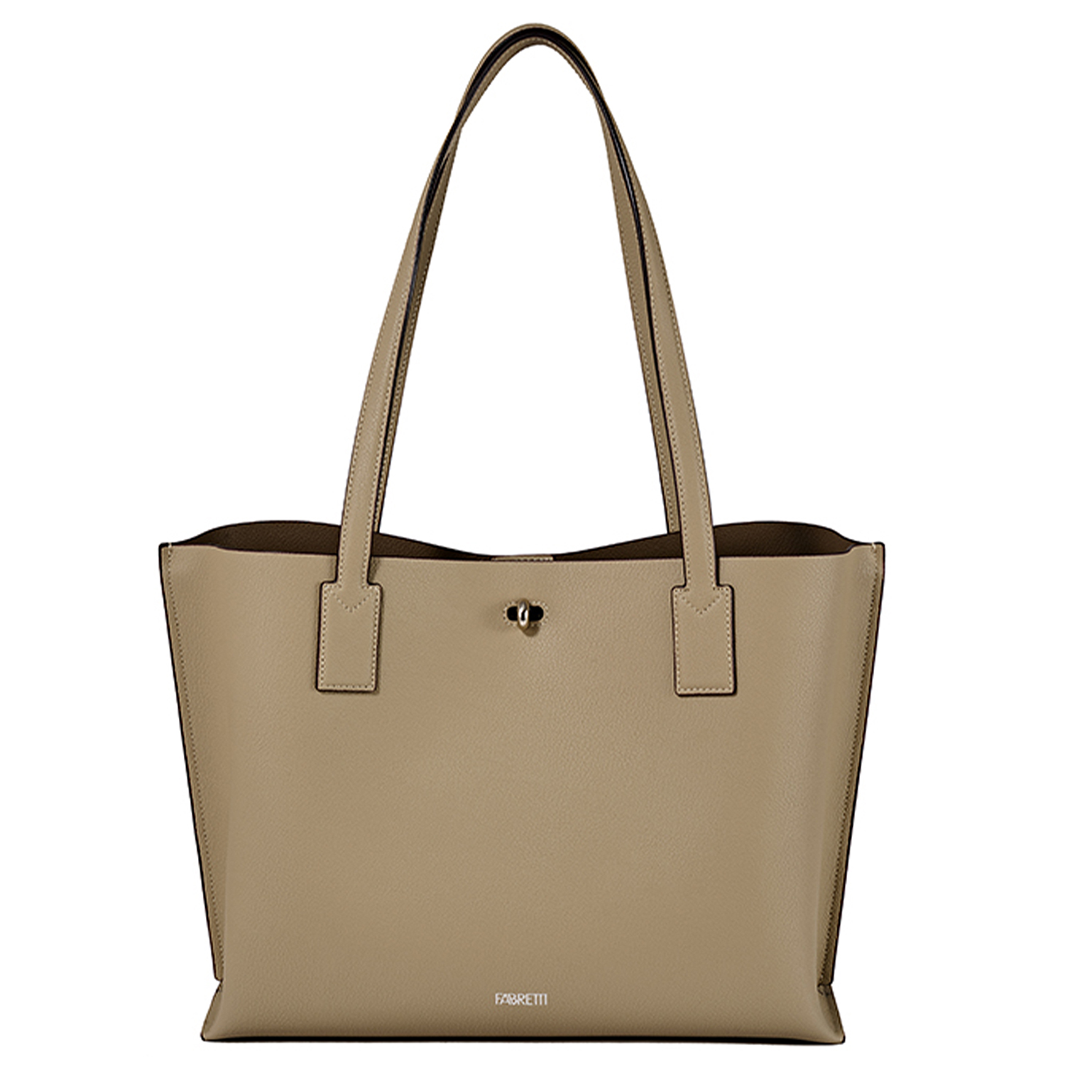 Стильная сумка-тоут FABRETTI выполнена из натуральной высококачественной зернистой кожи, приятной на ощупь, серо-бежевого оттенка. Внутри 2 отдела, разделенные карманом на молнии. Две ручки позволяют комфортно носить аксессуар в руке. Цвет фурнитуры - серебро.