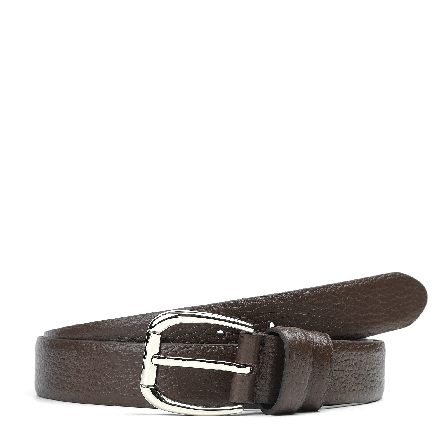 Классический женский ремень итальянского бренда FABRETTI в серо-коричневом цвете, выполнен из натуральной кожи с крупнозернистой фактурой. Тыльная сторона из гладкой натуральной кожи.
