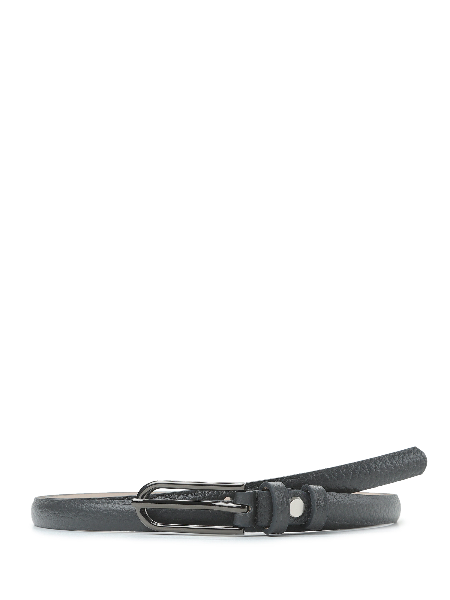Узкий женский ремень итальянского бренда FABRETTI в темно-сером цвете выполнен из натуральной кожи с крупнозернистой фактурой. Тыльная сторона - из гладкого плотного спила.