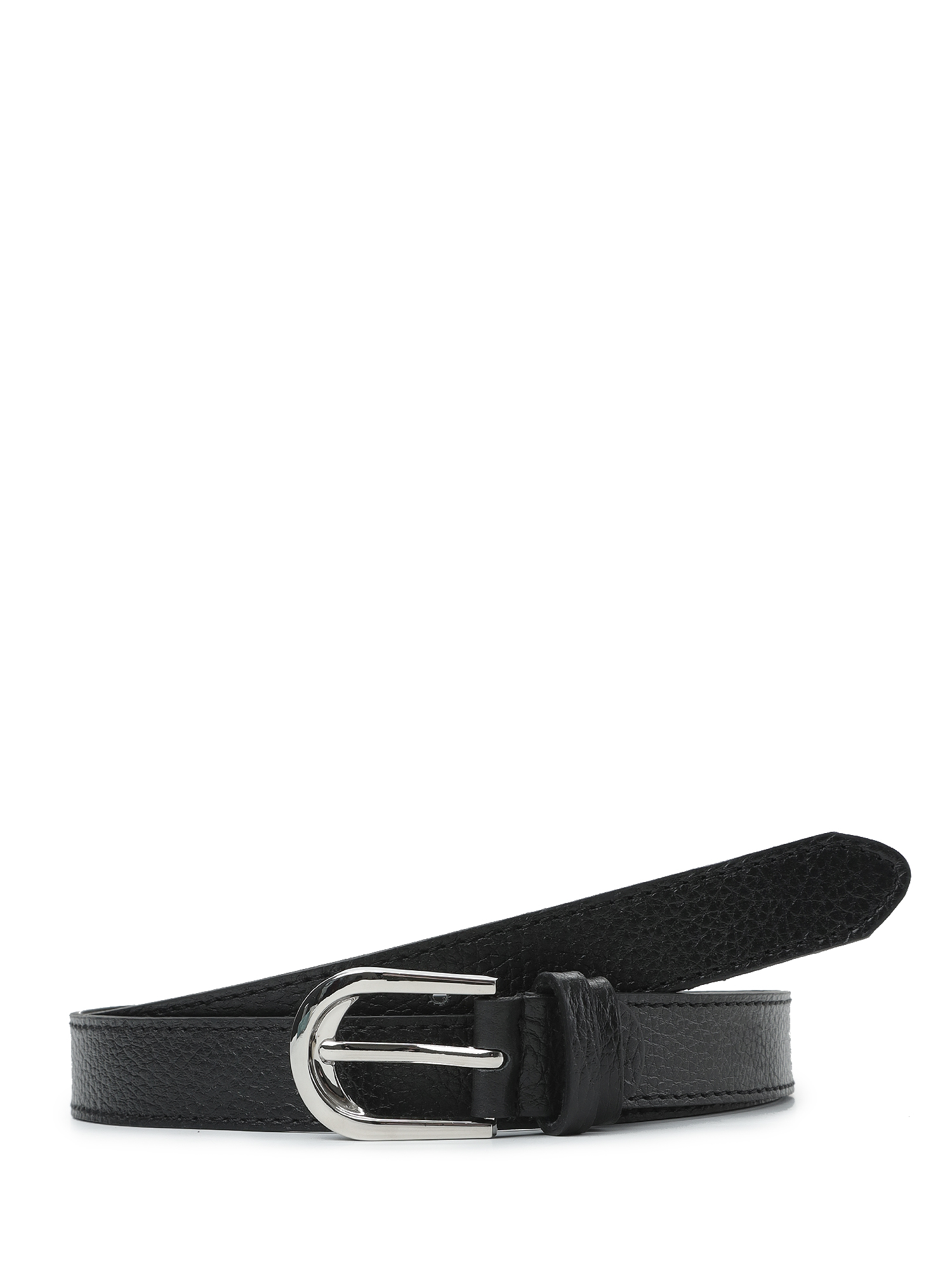 Модель дополнена вытянутой округлой пряжкой из прочного гальванического сплава с покрытием серебро. Пряжка крепится к изделию с помощью винта, что позволяет легко отрегулировать длину. Ремень отстрочен по краям в тон коже.