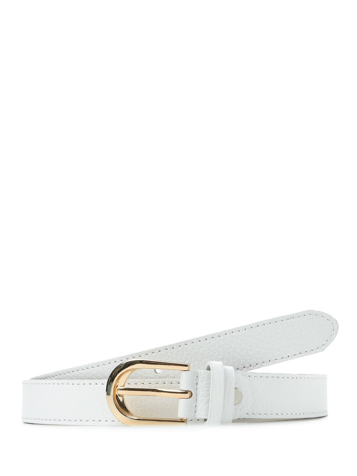 Модель дополнена вытянутой округлой пряжкой из прочного гальванического сплава с покрытием золото. Пряжка крепится к изделию с помощью винта, что позволяет легко отрегулировать длину. Ремень отстрочен по краям в тон коже.