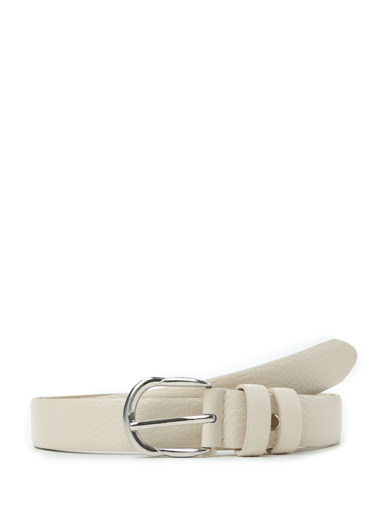 Базовый женский ремень итальянского бренда FABRETTI в молочно-белом цвете, выполнен из натуральной кожи с крупнозернистой фактурой. Тыльная сторона из гладкой натуральной кожи.