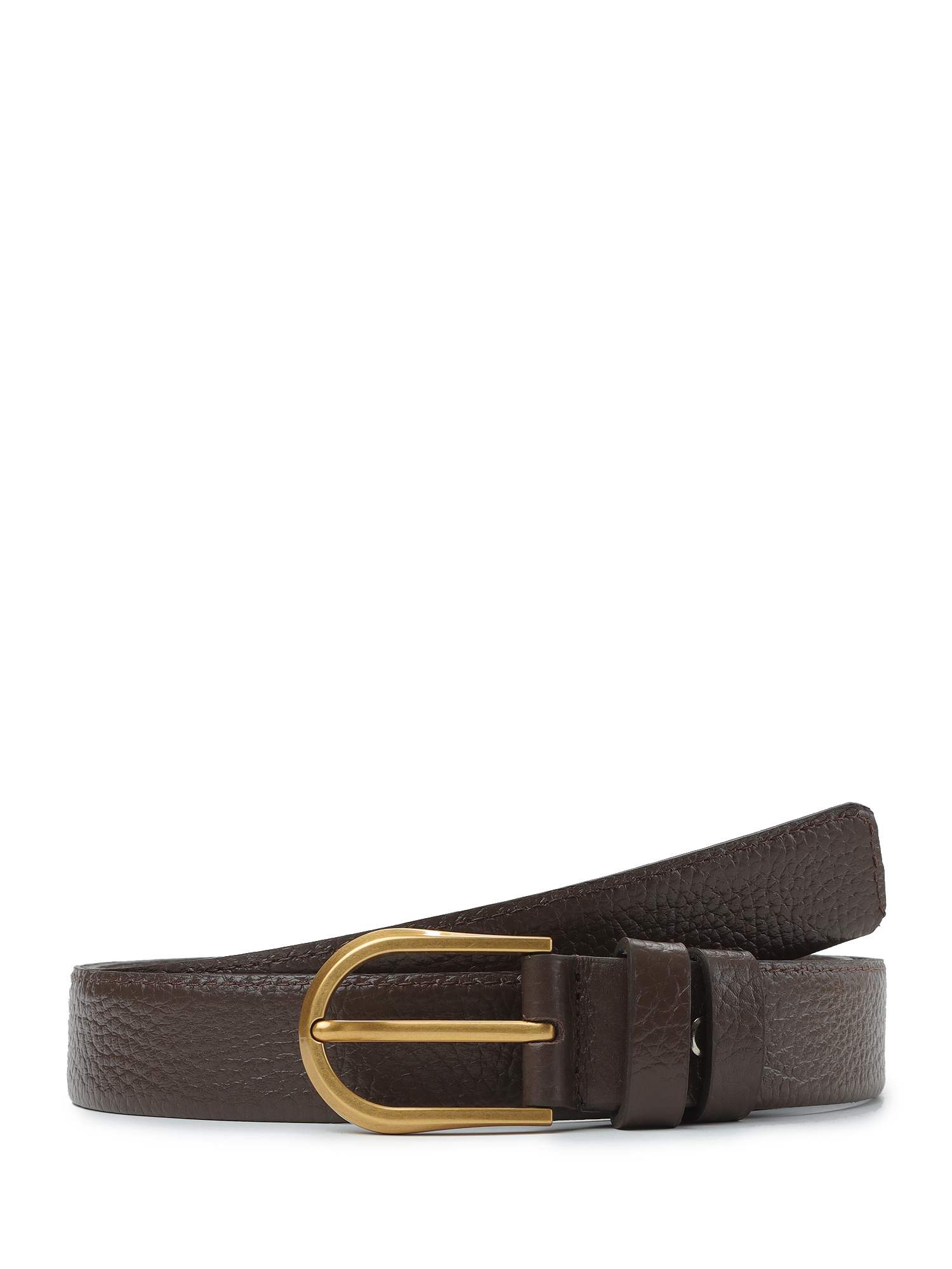 Необычный женский ремень итальянского бренда FABRETTI в темно-коричневом цвете выполнен из мягкой зернистой кожи. Особенность модели – двустороннее сложение кожи. Материал прошит с одной стороны. Такая конструкция делает ремень более мягким и гибким.
